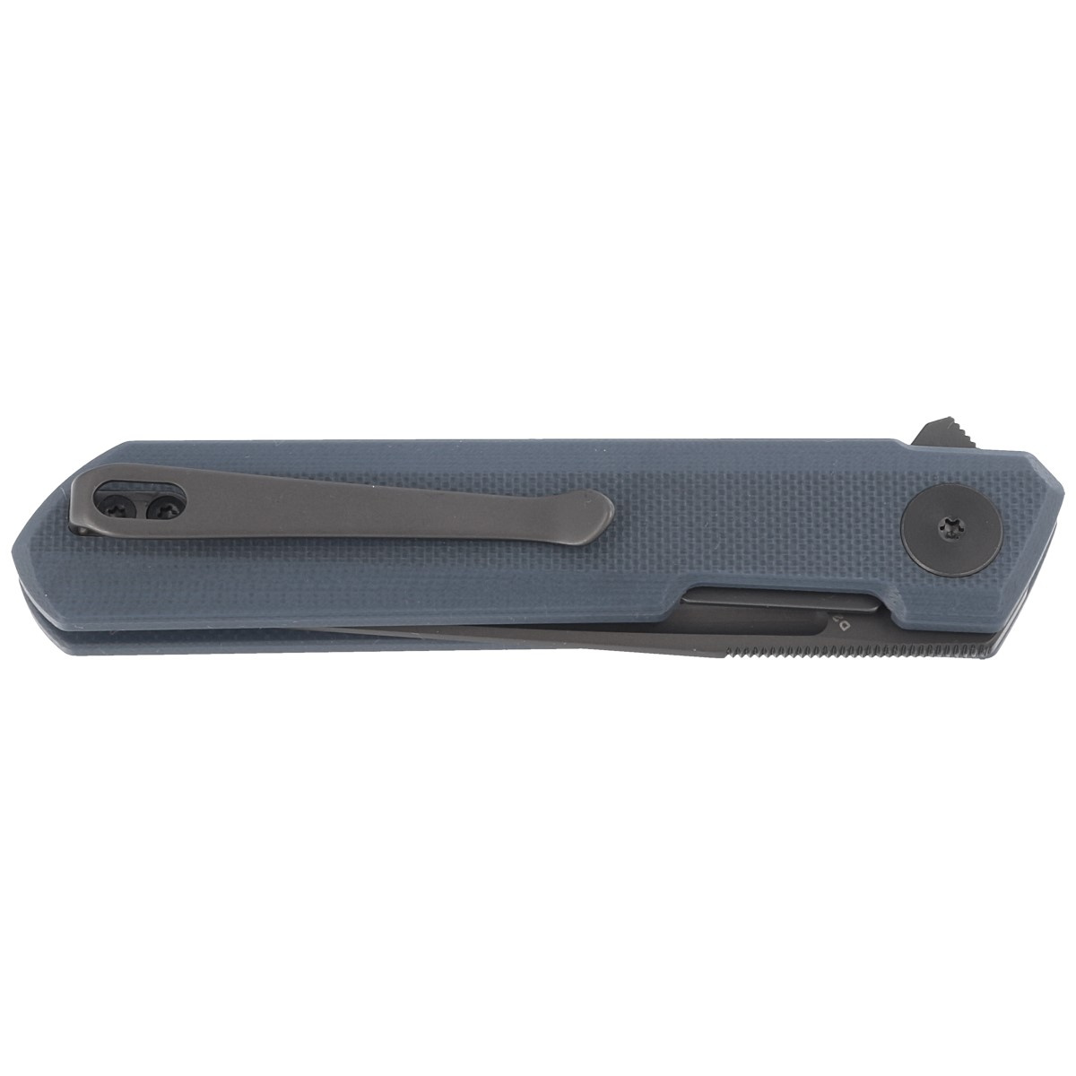 Handle - made of G10, a composite fiberglass material compressed with synthetic resin. The aggressive texture of the grips provides a firm grip, even with wet hands. The cover's chamfered edges eliminate sharp edges for comfort, and the finger indentation made on the front improves ergonomics. The open-backed design fixed with steel spacer sleeves reduces weight and makes cleaning easier. A two-position right/left deep carry clip allows you to carry the knife discreetly in your pocket in tip-up position (blade tip up).