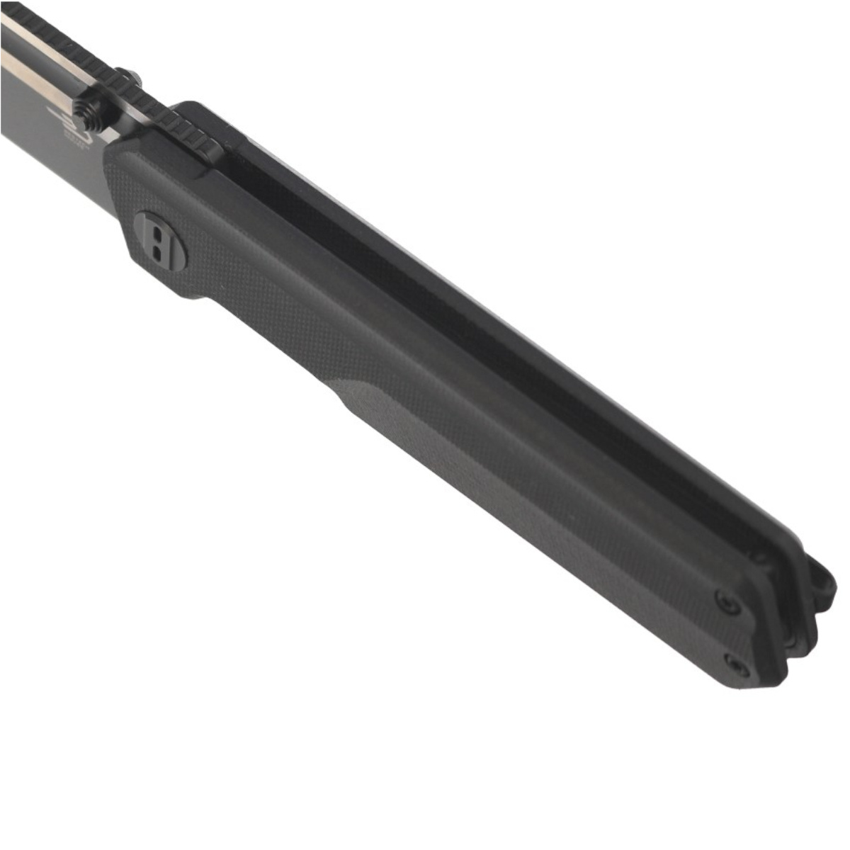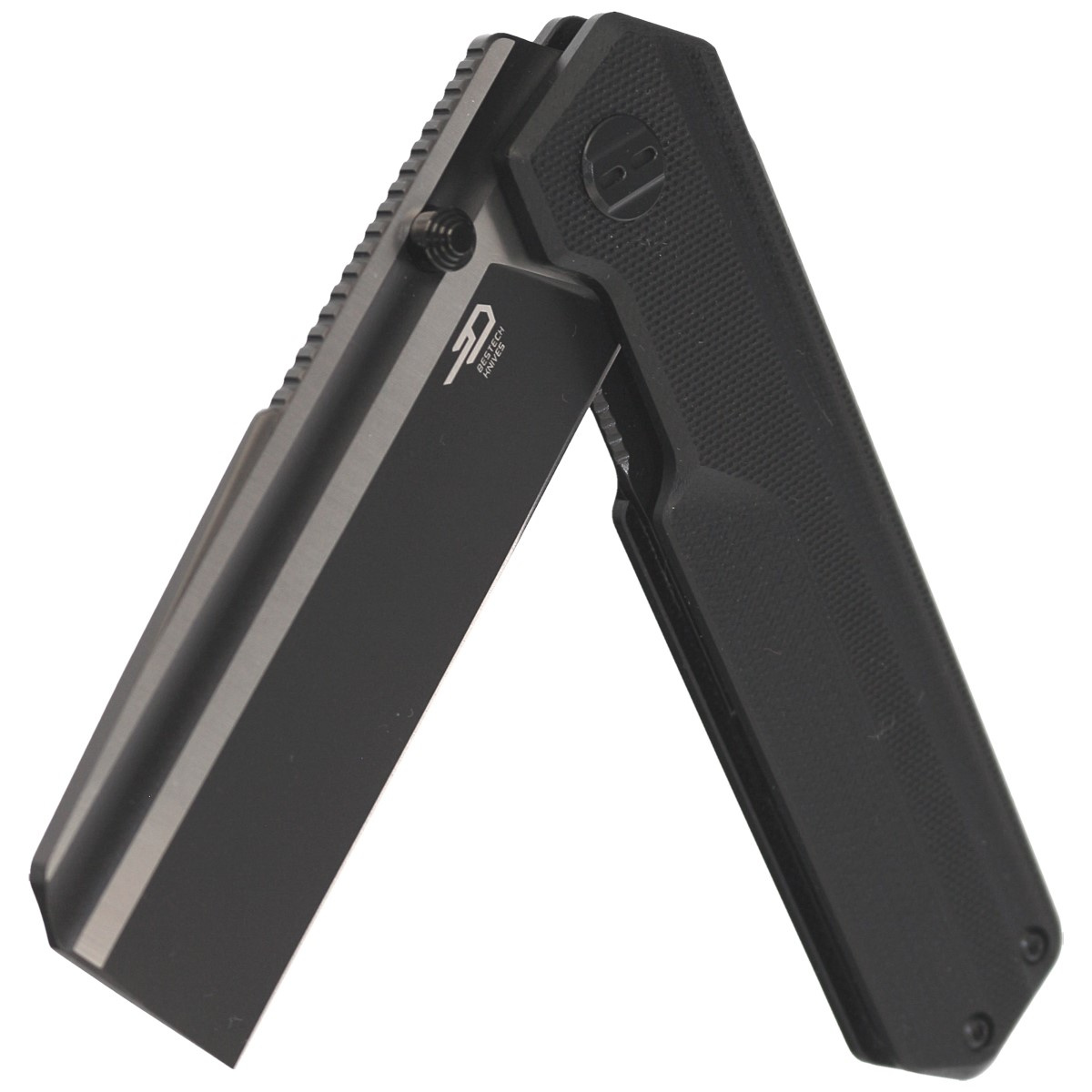 - Tardis Black G10, Black DLC / Satin latest design by Polish designer Ostap Hel and Bestech Knives. Compact size for easy carrying, comfortable G10 handle and D2 tool steel! A great companion for everyday outings!