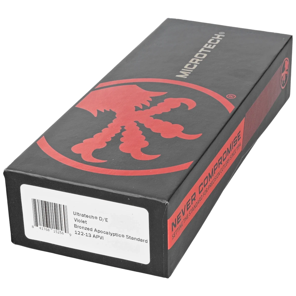 - Ultratech D/E Violet Aluminum, Bronzed Apocalyptic is a full-size OTF automatic knife from Ultratech. Operating in D/A mode, it features a hell of a fast blade extension mechanism. Designed by Tony Marfione owner of Microtech Knives