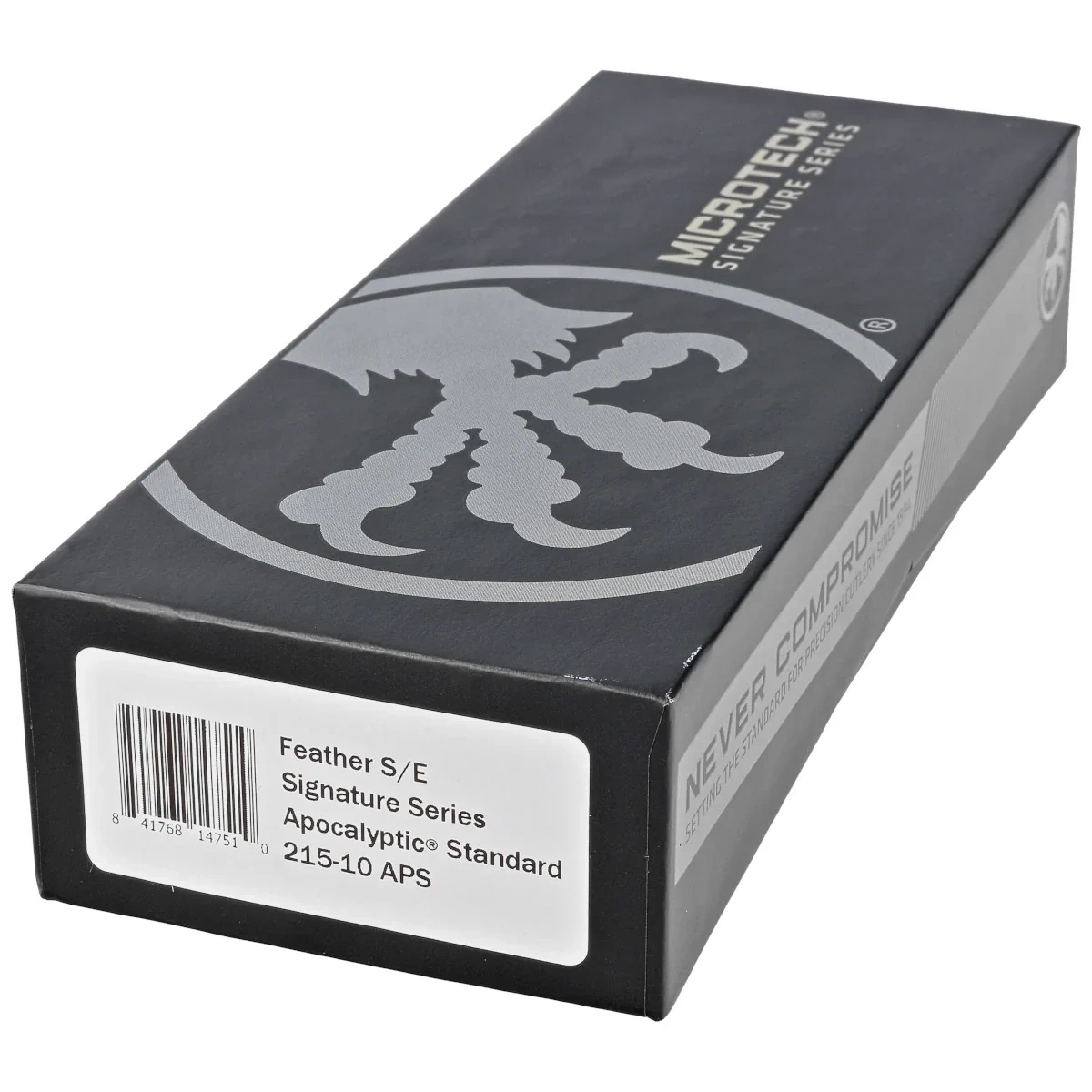- The Feather Apocalyptic Stonewash is a utility kerambit designed by Bastinelli Creations and made by Microtech. The small fixed blade fantastic for everyday carry is made of D2 tool steel. The perfect EDC companion