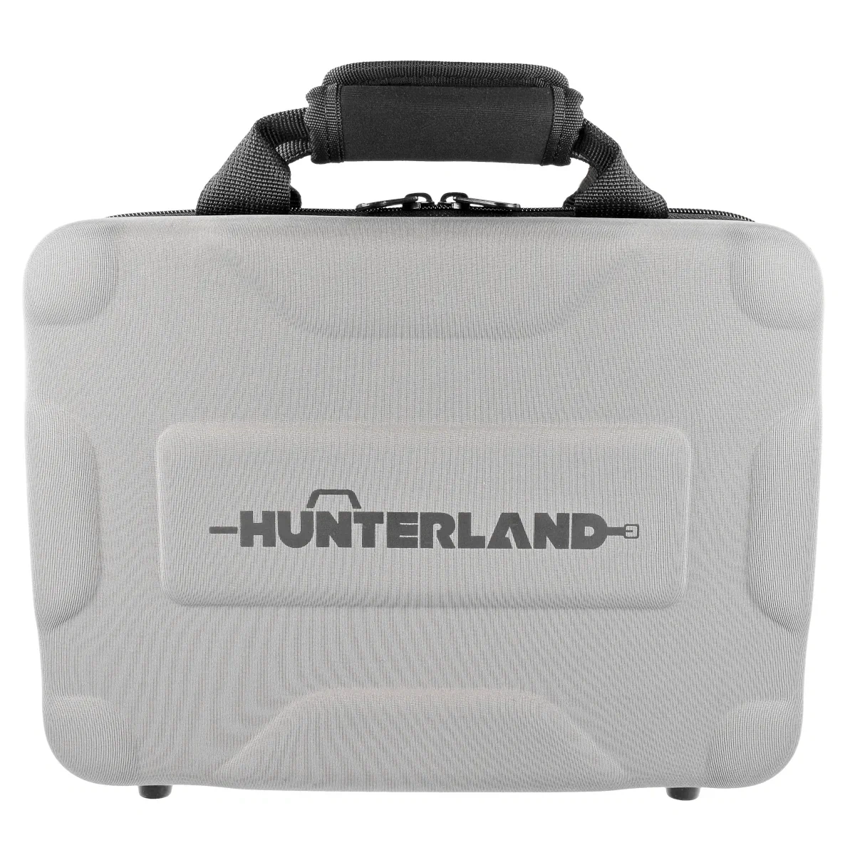 - Hunterland Gun Case 100 Grey, for carrying guns, magazines and accessories. Made of durable lightweight plastic. The inner walls are stiffened and lined with foam to prevent the contents from shifting during transport.