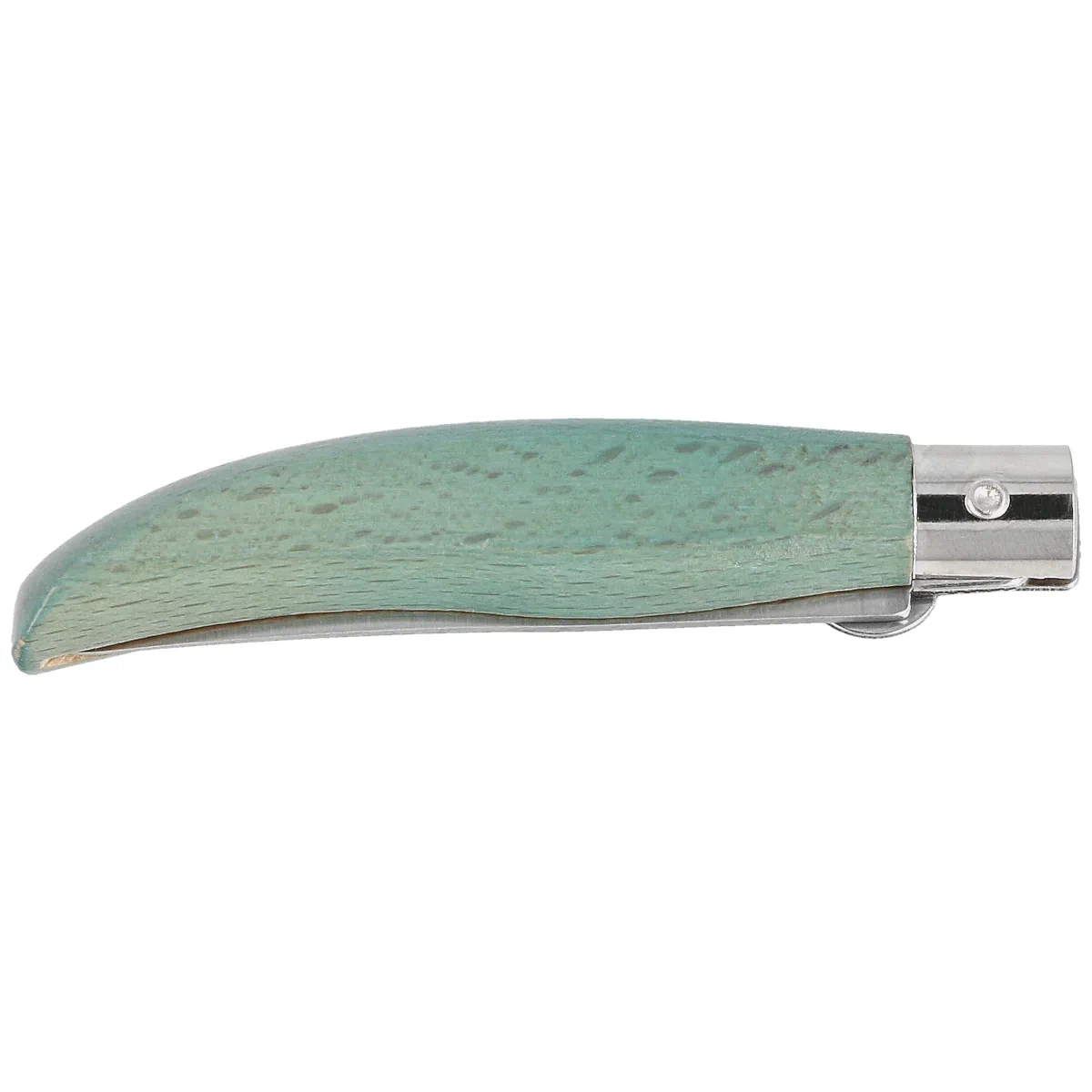 Iberica S with lock, Turquoise Beech Wood, Steel HD (Hardware) ultralight 25g knife from knife manufacturer MAM for 150 years. Made of easy-to-sharpen, long-lasting stainless steel. Handle stained beech wood. Indispensable at home, in the office, while traveling. The choice of those who appreciate tradition, simplicity and functionality. An excellent idea for an inexpensive gift or advertising gadget. Made in Portugal.