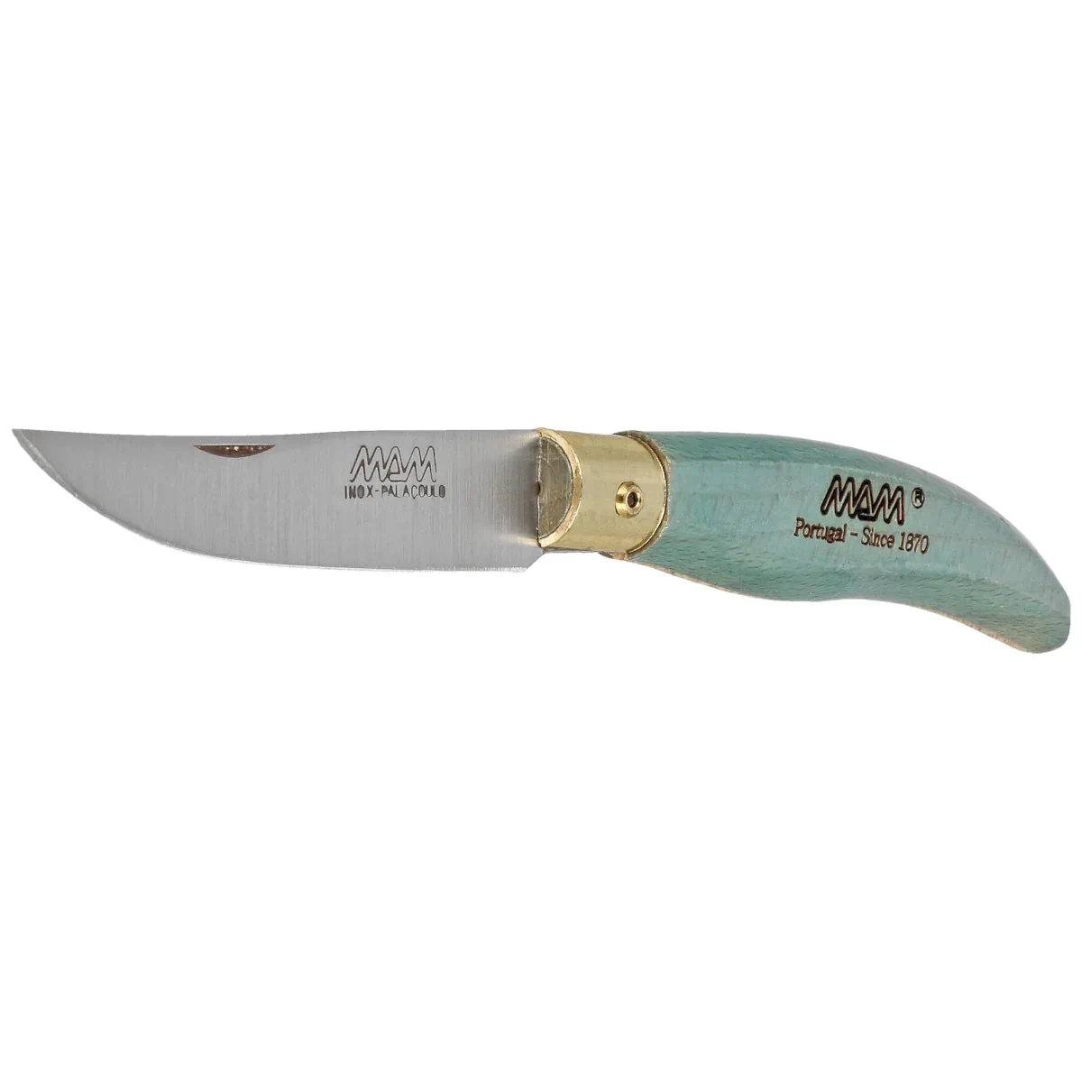 • Iberica S, Turquoise Beech Wood Brass HD ultralight 25g knife from MAM a knife manufacturer for 150 years. Made of easy-to-sharpen, long-lasting stainless steel. Handle beech wood. For those who appreciate tradition and simplicity of use!
