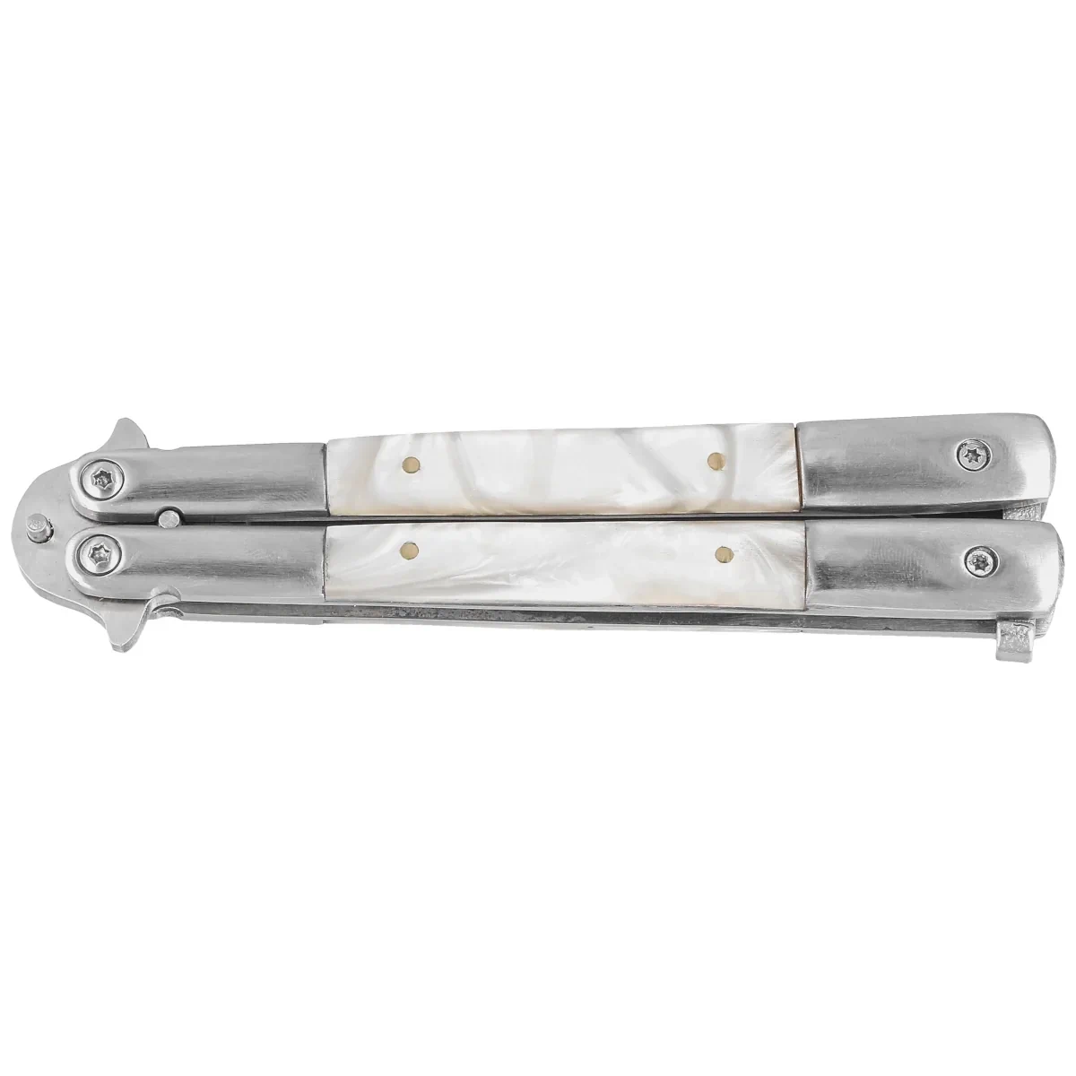 3. Practicality: The folding butterfly design makes the Balisong Pearl / Stainless Steel, Satin easy to carry and store.
