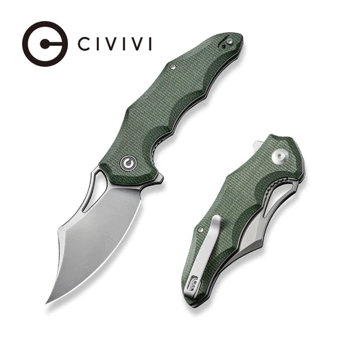 • Chiro Green Canvas Micarta, Satin aggressive in design EDC folding knife. Excellent ergonomics, tactical design, double-sided clip and two ways to open the blade with a hole or flipper. Excellent price/quality ratio. Bestseller!