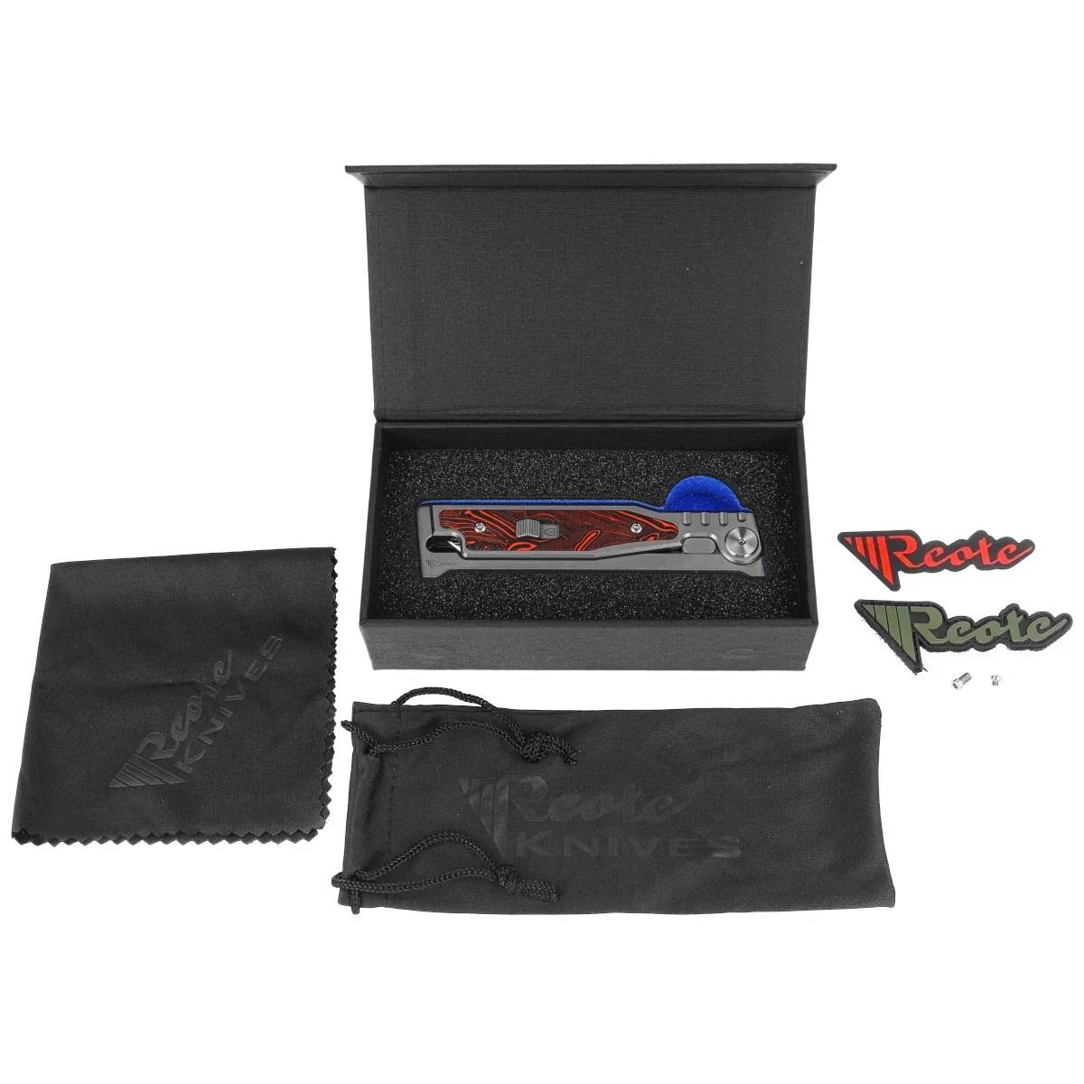 Reate Knife EXO-M OTF Gravity T/E Bead Blasted Titanium/Damascus Red-Black G10, Satin Elmax