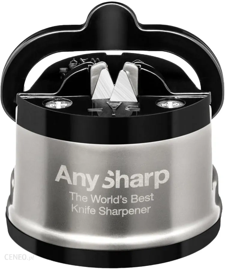 • AnySharp PRO Silver, an extremely efficient knife sharpener. Thanks to its compact size, it is easy to store. Triangular sharpening plates, made of tungsten carbide alloy will easily sharpen any knife, including serrated ones!