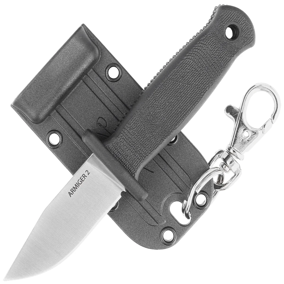 - Armiger 2 Clip Point Black Thermal Plastic Rubber, Satin, compact neck knife. Full tang construction, comfortable Handle for secure grip. Sheath made of kydex with carabiner. Designed by Cold Steel's longtime designer, Andrew Demko.
