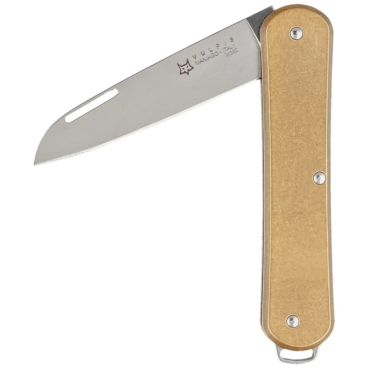 • Vulpis Brass, Polished, if you're bored with Swiss design, try Italian elegance! The new Fox Knives Vulpis series wants you to not give up good steel in a new small and versatile multi-tool!