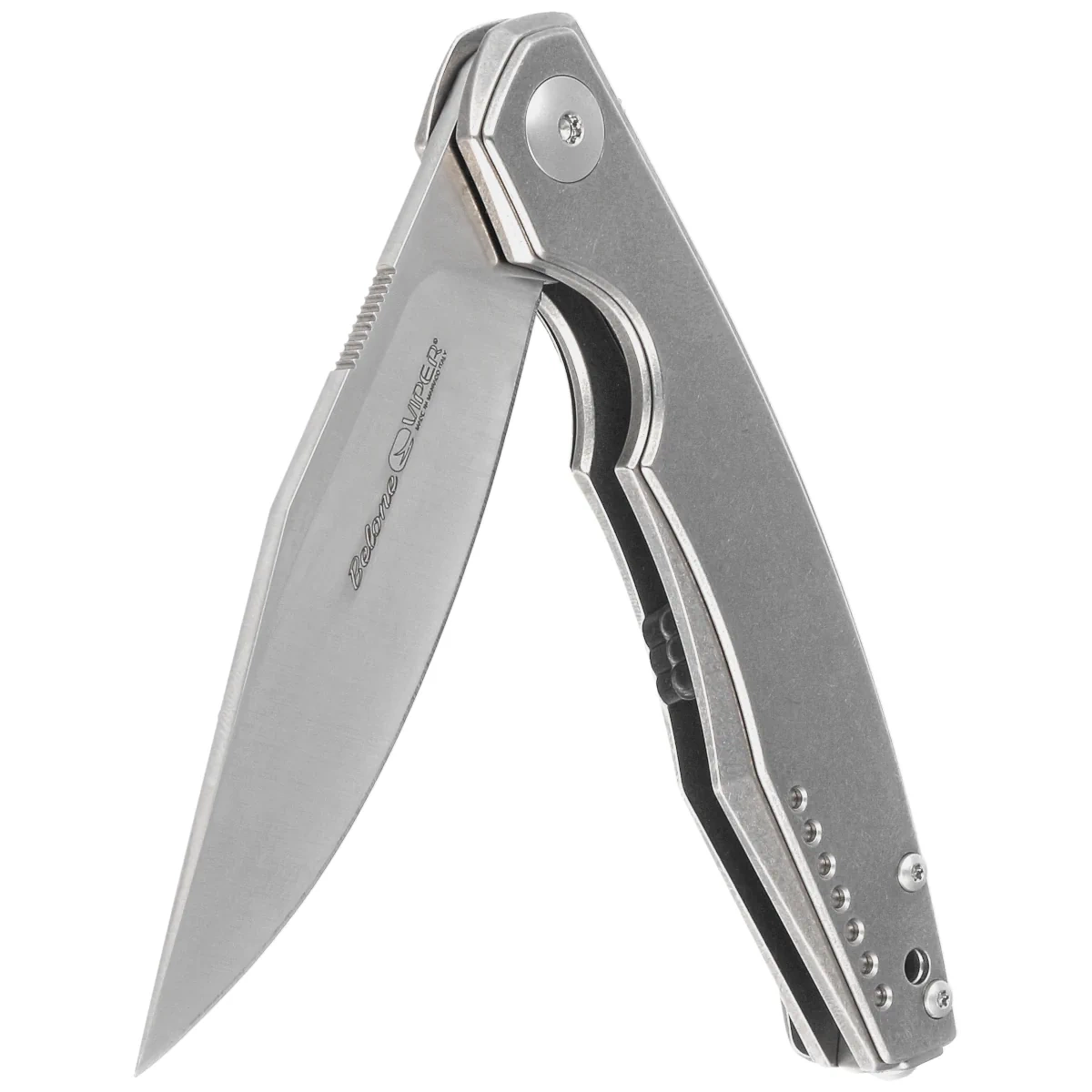 - Belone Stonewashed Titanium, Satin shape derived from traditional Italian knives. Designed according to the minimalist style of Danish knifemaker Jesper Voxnaes. A lightweight knife adorned with sophisticated details!