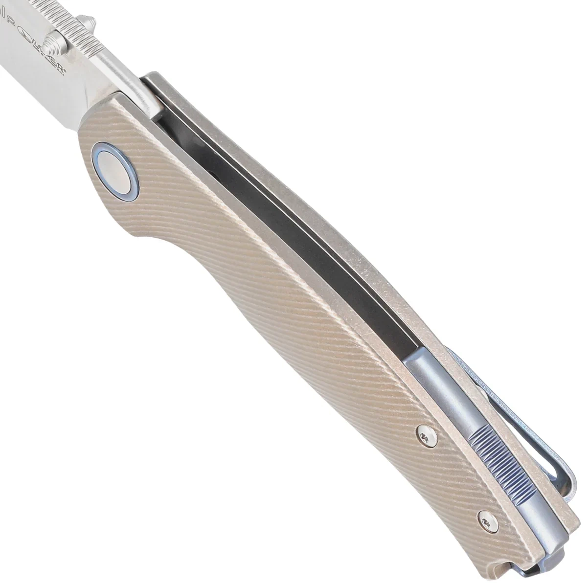 Blade - Drop Point type with a clearly marked blade belly, finished with an elegant satin finish. The solid thickness of the blade, combined with a high flat grind (Flat Grind), gives excellent cutting edge geometry and extreme cutting performance. Ball bearings support the smooth operation of the Blade's opening mechanism, which can be opened using either the dual thumb studs in the blade (dual thumb studs) or a quick index-finger flipper. When opened, the flipper forms a mini-guard to prevent the hand from slipping on the blade. Liner lock mechanism.