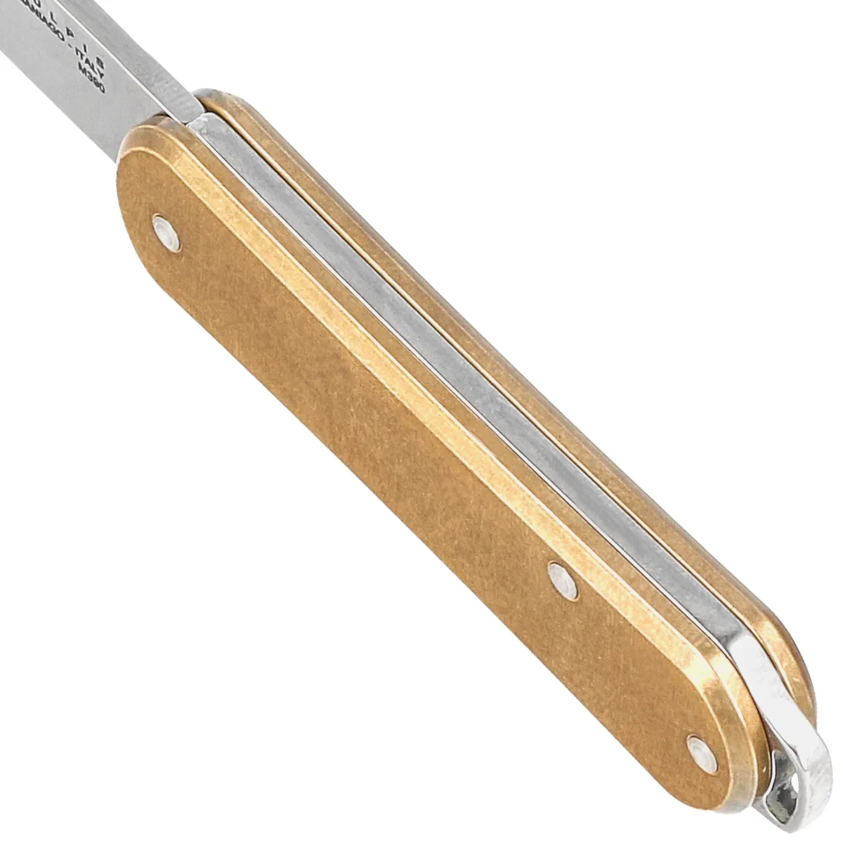 • Vulpis 108 Brass, Polished, if you're bored with Swiss design, try Italian elegance! The new Fox Knives Vulpis series wants you to not give up good steel in a new small and versatile multi-tool!