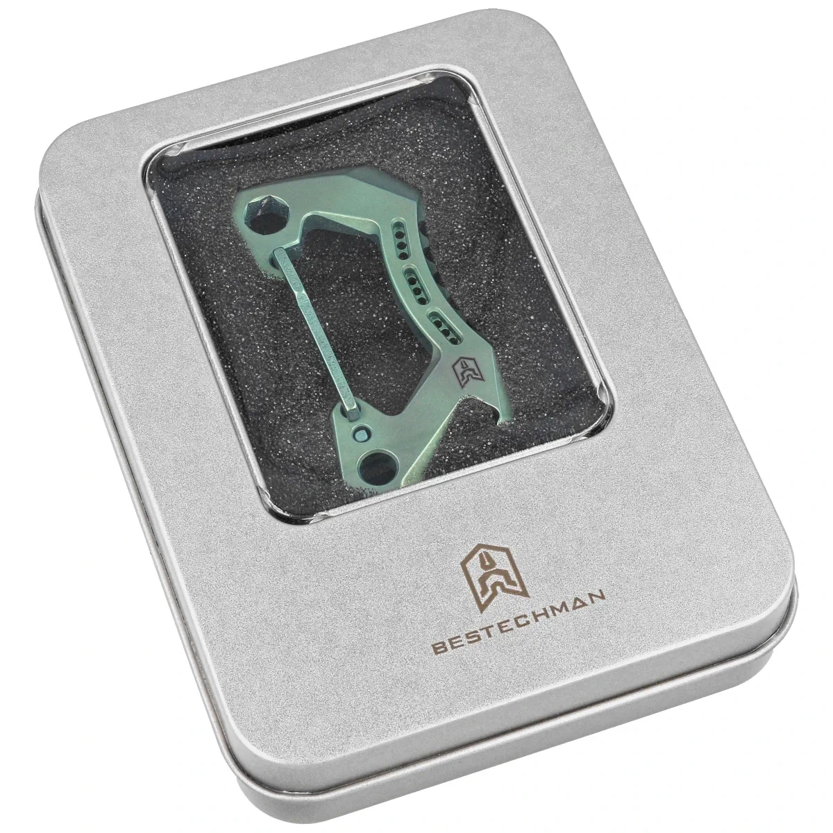 - Bestech Carabiner Green Titanium made of solid non-magnetic titanium is a versatile carabiner. Includes a bottle opener and a hex key that can be used as a bit holder. A versatile everyday accessory!