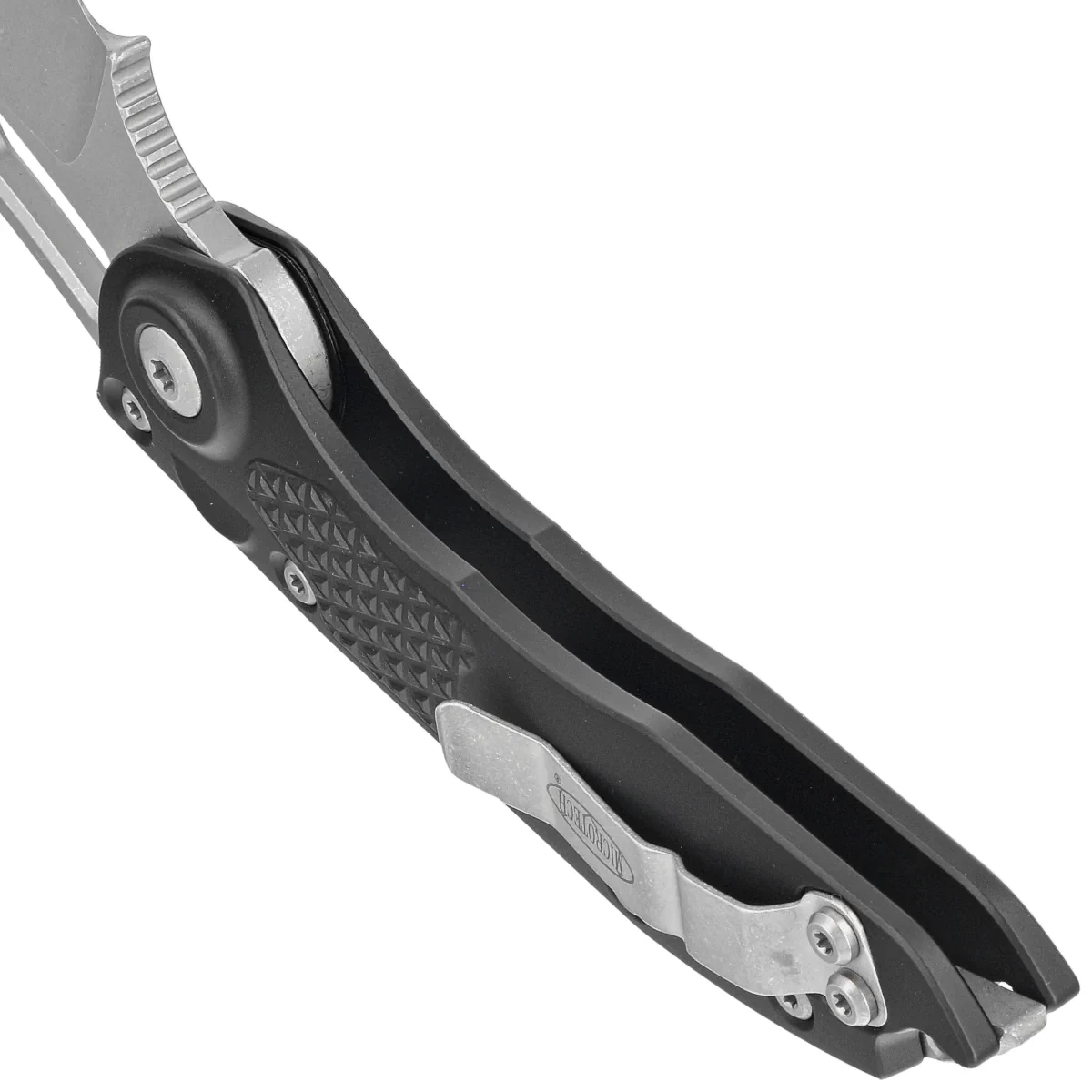 - Stitch-A S/E Black Aluminum, Apocalyptic automatic version of the popular design by Sebastijan Berenjie of Borka Blades and Microtech. Wide harpoon-shaped blade, superior materials and legendary quality of workmanship from Microtech Knives.