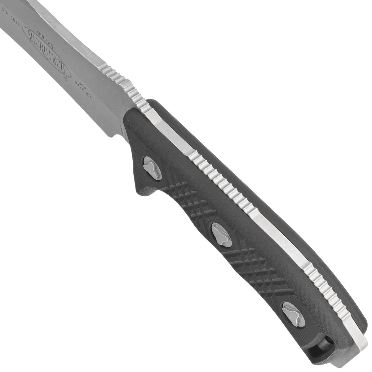 - Arbiter S/E Black G10, Apocalyptic, Microtech's largest fixed blade knife. Powerful Bowie-type blade in what is considered one of the best Böhler M390MK knife steels. Comfortable, ergonomically contoured G10 composite handle.
