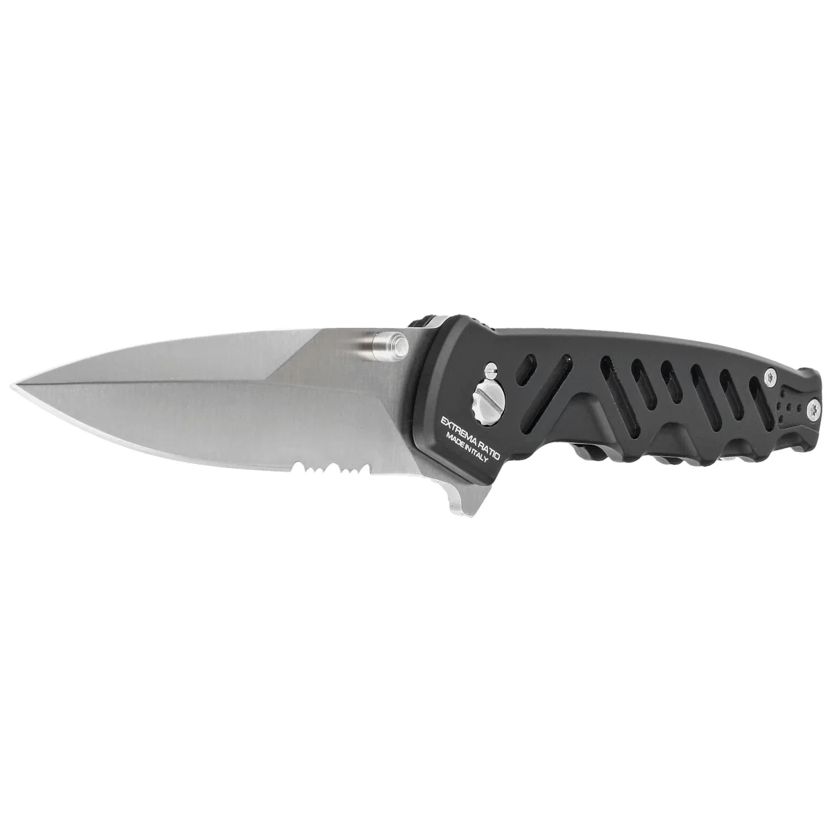 - Caimano Nero N.A. Black Aluminum, Satin, large tactical folding knife, Its name refers to the Caimani Neri del Piave unit. Designed by Extrema Ratio for G.O.I., Gruppo Operativo Incursori, aluminum Handle, proven Böhler N690 steel.