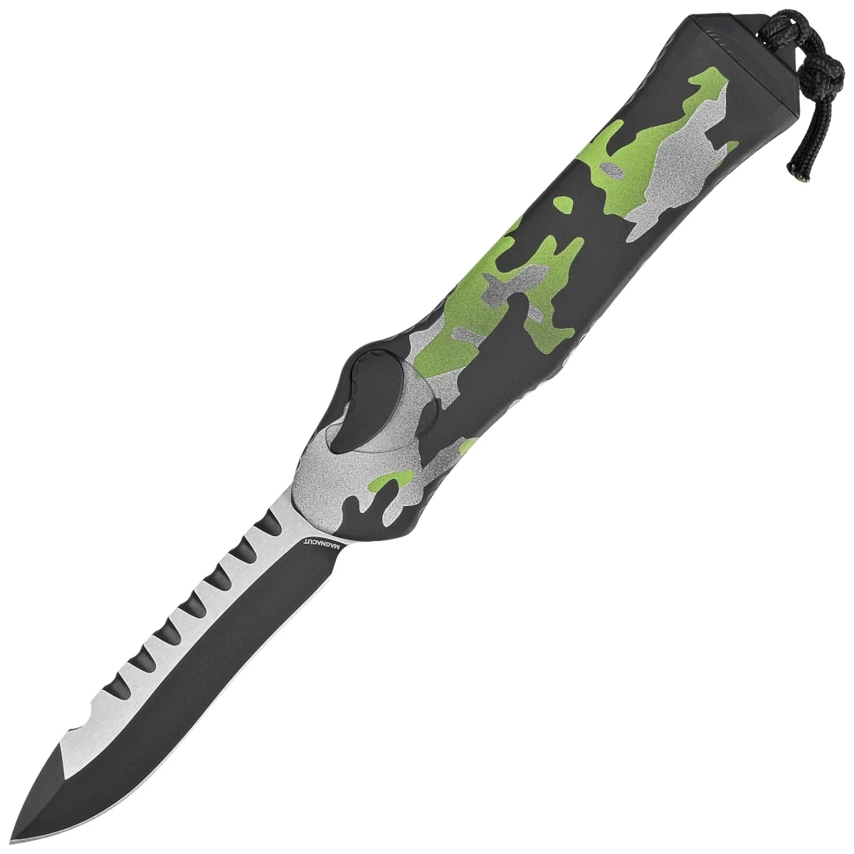 - Hydra R/E Heretic Camo Aluminium, Black/Satin an automatic knife you won't confuse with any other! An automatic of more than average strength, it works in S/A (Single Action) mode with the excellent MagnaCut steel on blade! Designed by Tony Marfione Jr