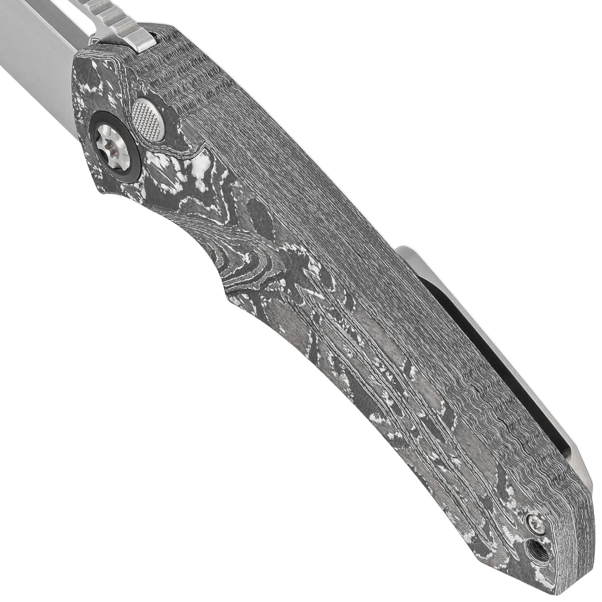 The Pariah Manual White Camo Carbon Fiber, Stonewashed is a unique folding knife from the Pariah series that certainly stands out from other knives. The ergonomic carbon fiber handle provides comfort and a secure grip. Blades are made of CPM MagnaCut, considered the best steel for knives today. Designed for on-the-job performance, it combines elegance and functionality. Sophisticated details make it not only a practical tool, but also a unique accessory that deserves a place in any knife collection. Precision craftsmanship quality materials make it not only a practical tool, but also a work of functional art. Whether you are a knife collector or looking for a reliable tool for everyday use, the Pariah Auto is a knife that is sure to exceed your expectations, a unique experience that redefines what a folding knife can be.