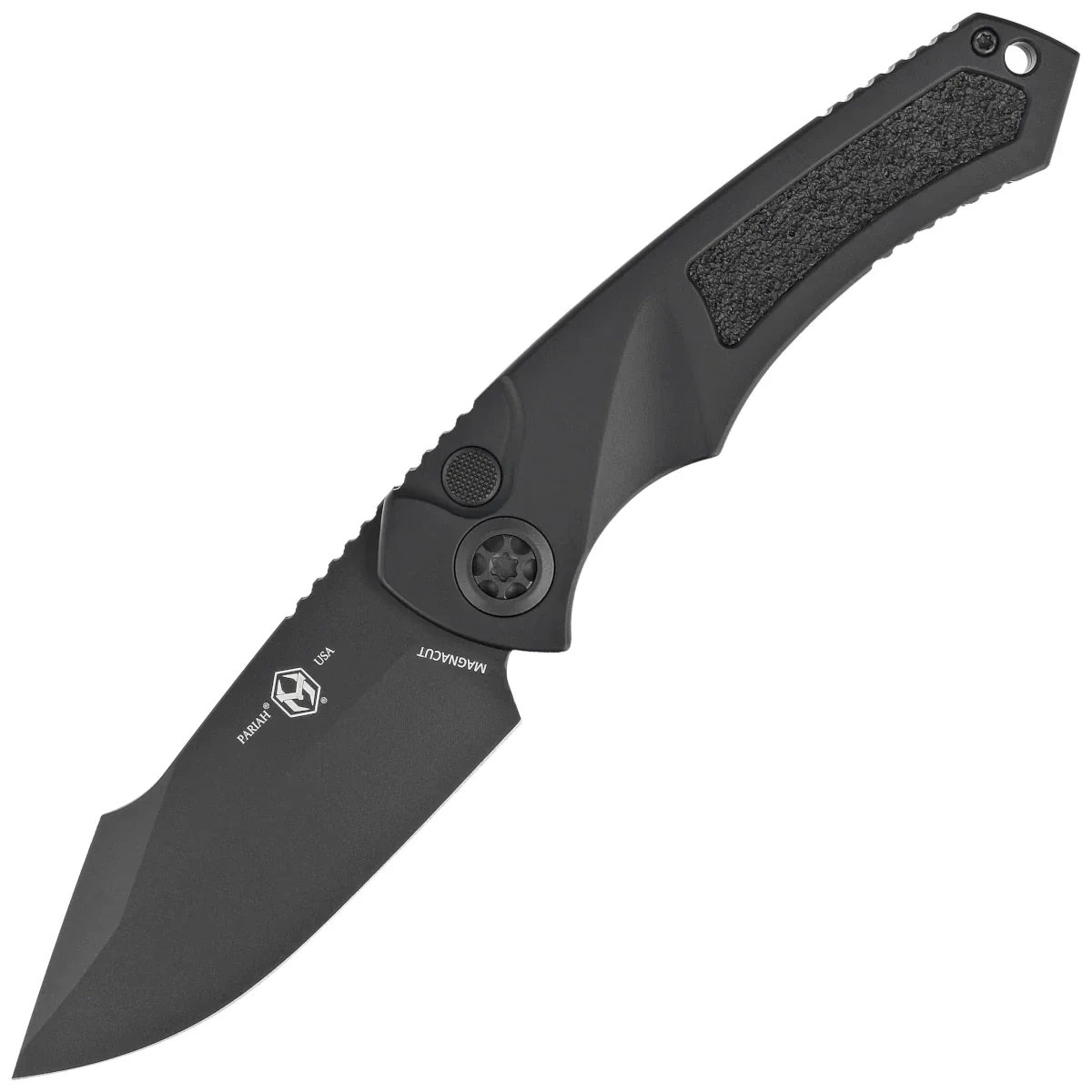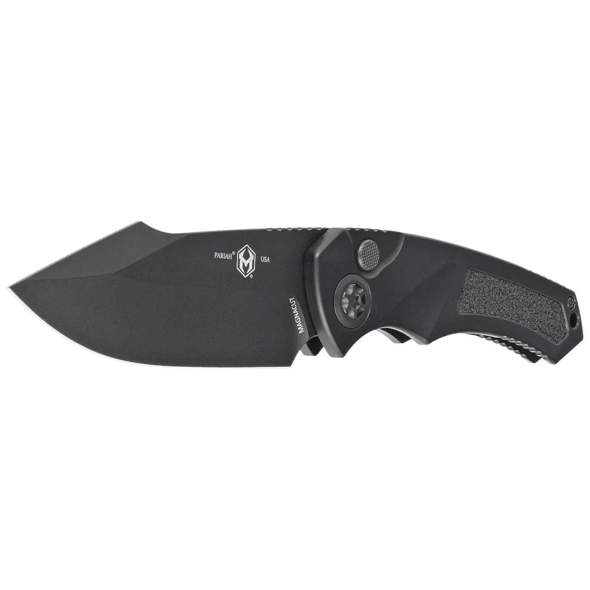 - Pariah Auto Black Aluminum, Black Cerakote. A large automatic knife from the Pariah series. Ergonomic aluminum Handle, Blade made of what is now considered the best steel for CPM MagnaCut knives, coated with black Cerakote. This knife make you stand out!