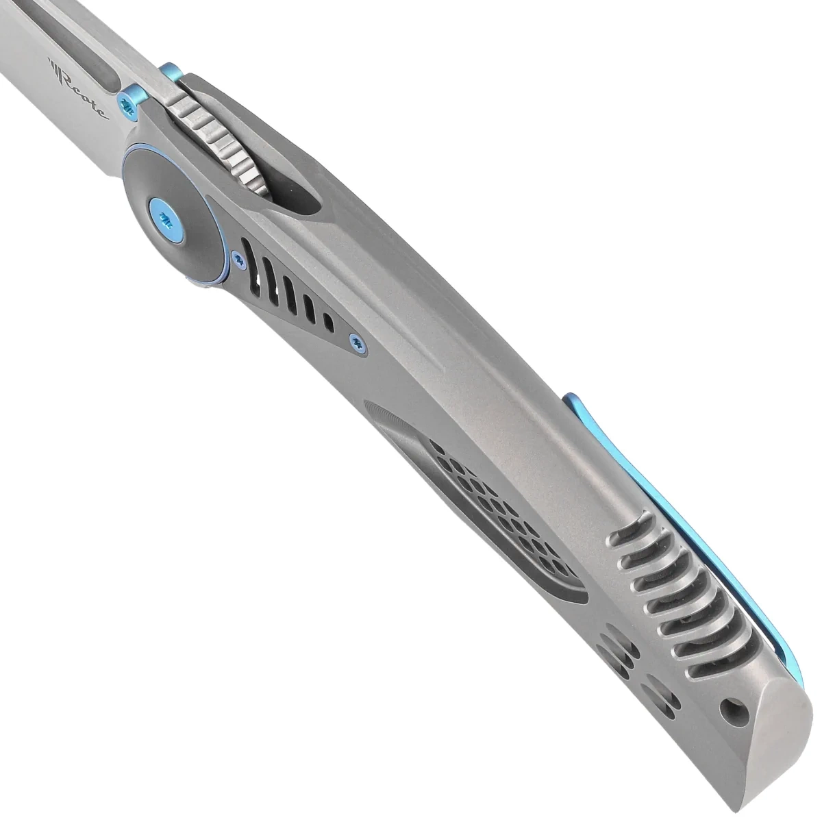 Reate GTR Knife Bead Blasted Titanium/Zirconium Inlay, HW Ti-Blue Clip, Hand Satin M390