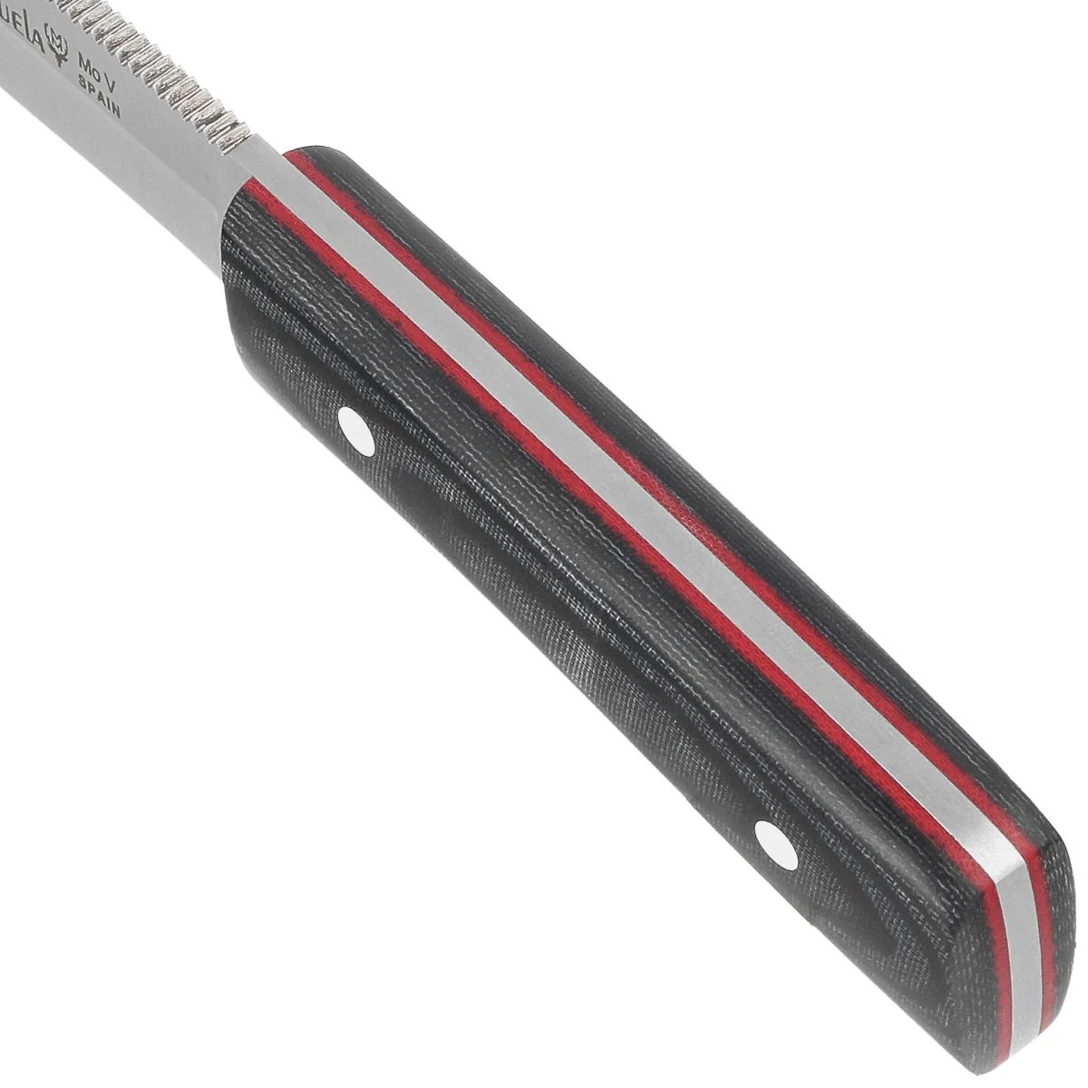 Handle - contoured, covered with polished, waterproof canvas Micarta scales in black-blue. Provides a comfortable, secure grip. The scales are fastened with high-nickel brass rivets. A lanyard hole is positioned at the rear of the handle for added security.