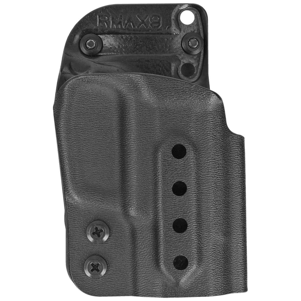 - RMAX9 holster for external OWB or internal IWB carry, depending on user needs. For concealed carry IWB it is mounted on belt from inside of pants. Retention screw to customize the holster's grip strength. For the Ruger MAX9 pistol.