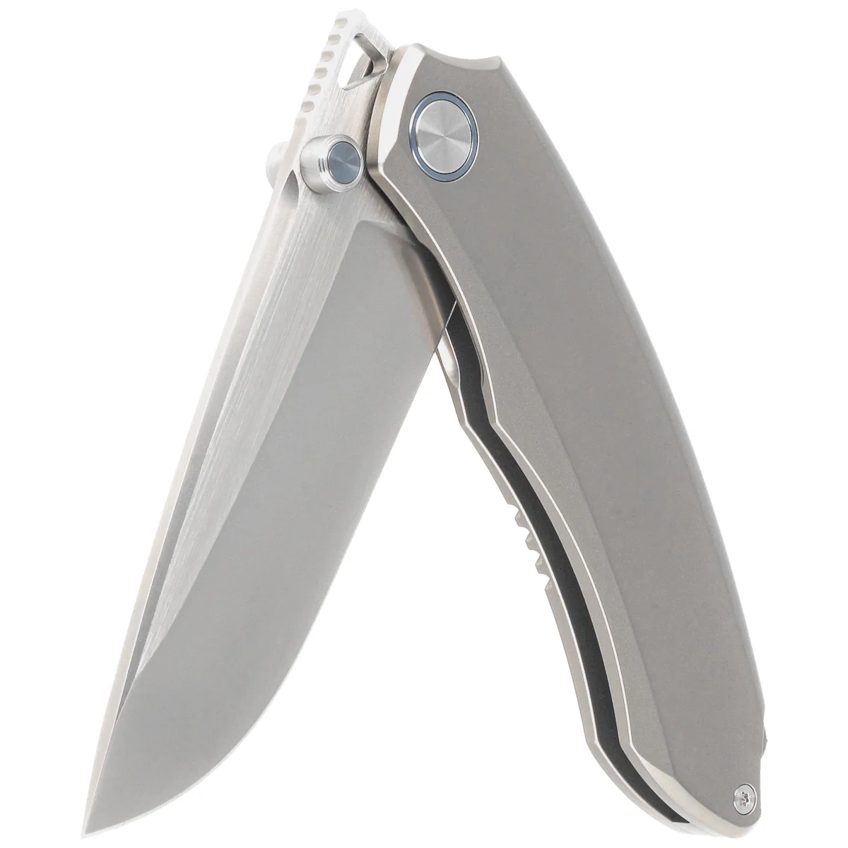 • Wild Species Gray Titanium, Hand Grinding handy, compact EDC folding knife. Blade drop point made of Böhler M390 steel, fast Front Flipper blade for opening and titanium Handle. Excellent value for money! Bestseller!