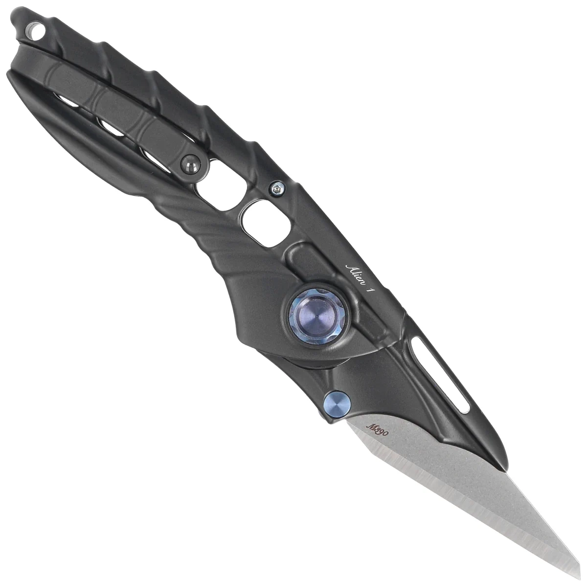 - Alien1 Black DLC Titanium, Satin, EDC folding knife from Rike Knife. A showcase of engineering capabilities, monolithic titanium handle construction, quick opening with front flipper, Blade made of Böhler M390 steel, A masterpiece of the art of utility!