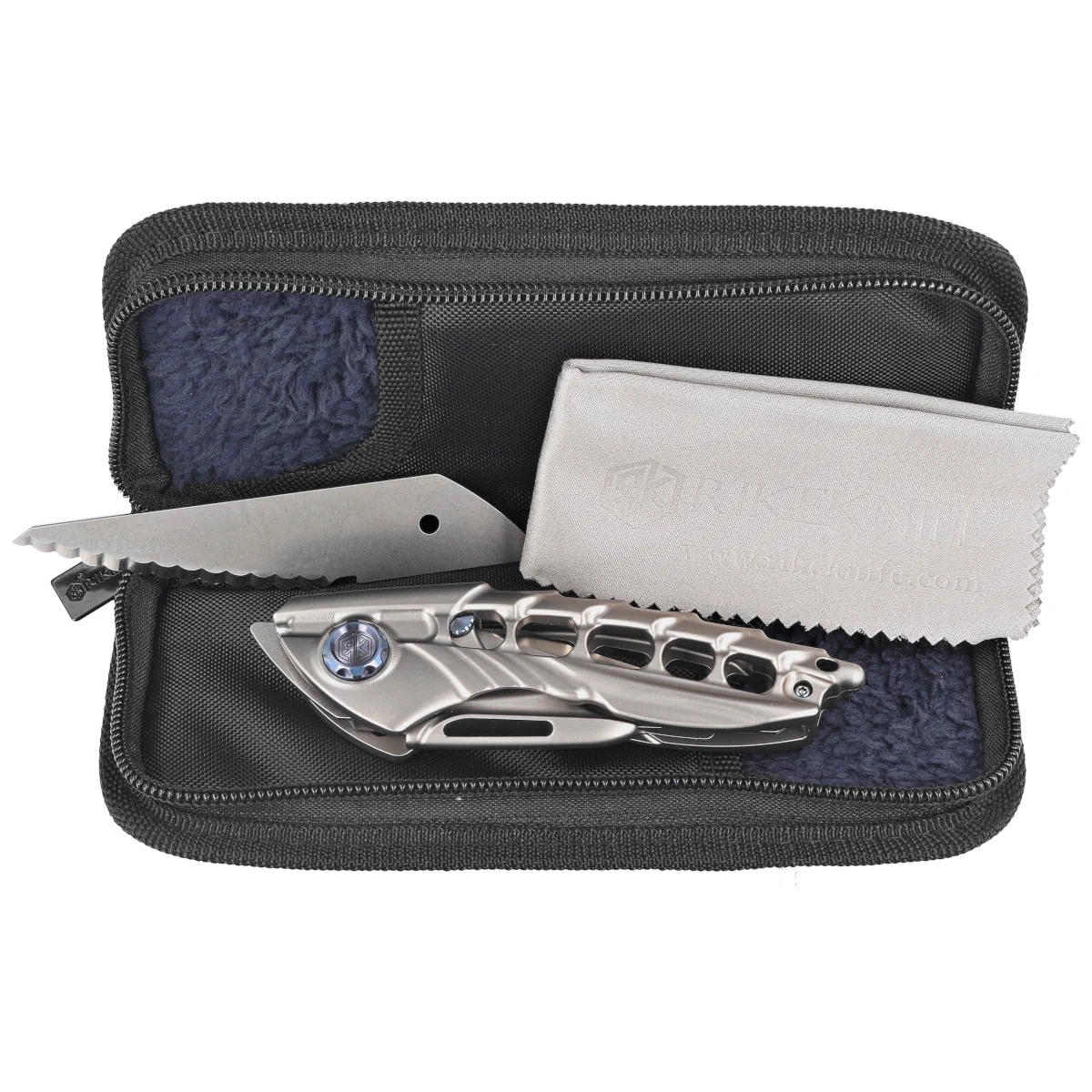 Case - the knife is packed in a zippered nylon soft pouch with the brand logo for safe carrying and storage of the folder.
