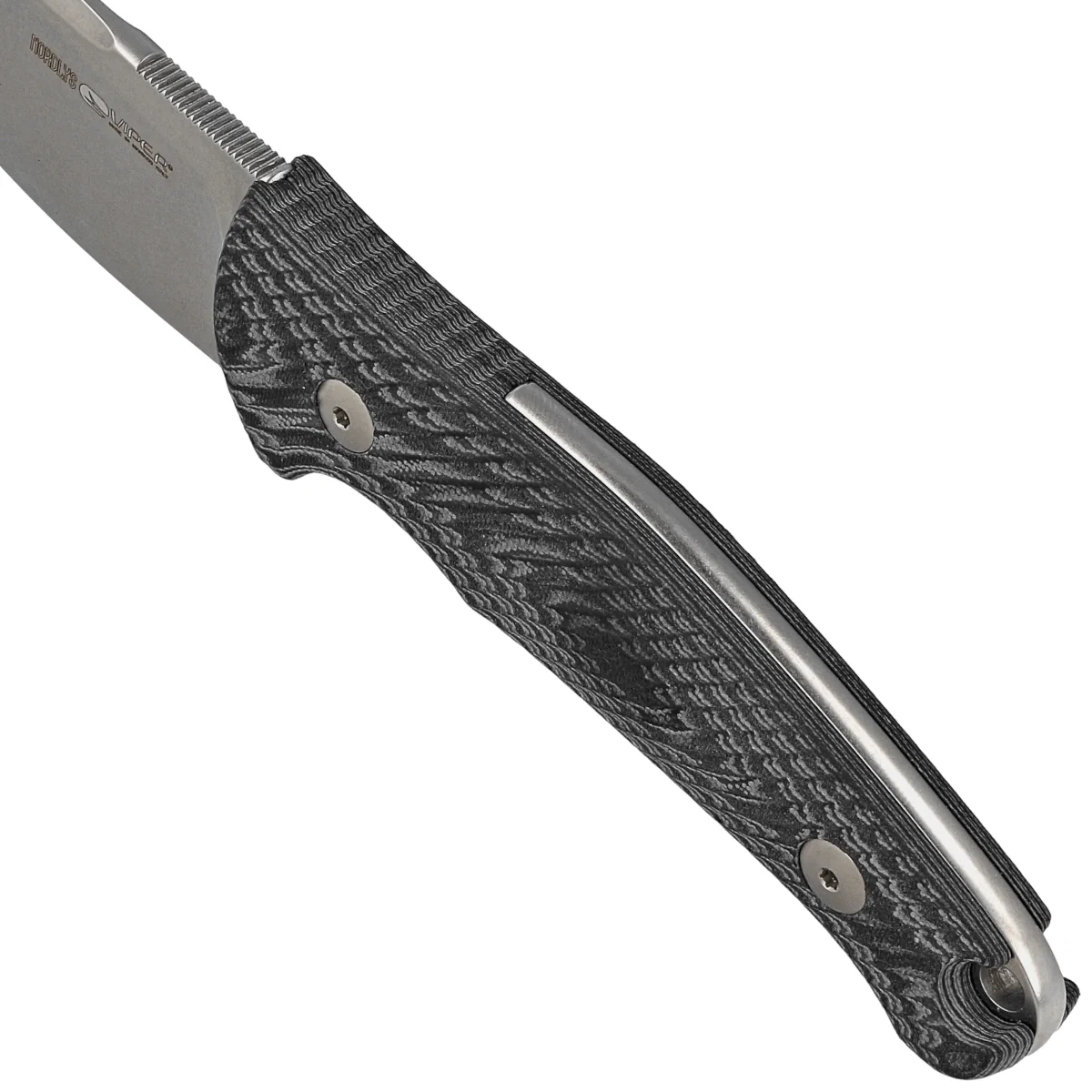 TheNordlys Black Suretouch, Stonewashed, designed by Danish knifemaker Jens Ansø, is a true masterpiece of craftsmanship. Made from the proven and popular Böhler N690Co stainless steel, known for its strength and long blade retention. The comfortable handle, made of innovative Suretouch composite, provides a secure grip even in the toughest conditions. This is a knife that not only looks good, but also meets the challenges that await it. Its versatility makes it an ideal tool for anyone who values reliability and tool functionality. Whether you are an outdoor enthusiast or simply need a sturdy knife for everyday use, this model is sure to meet your expectations.