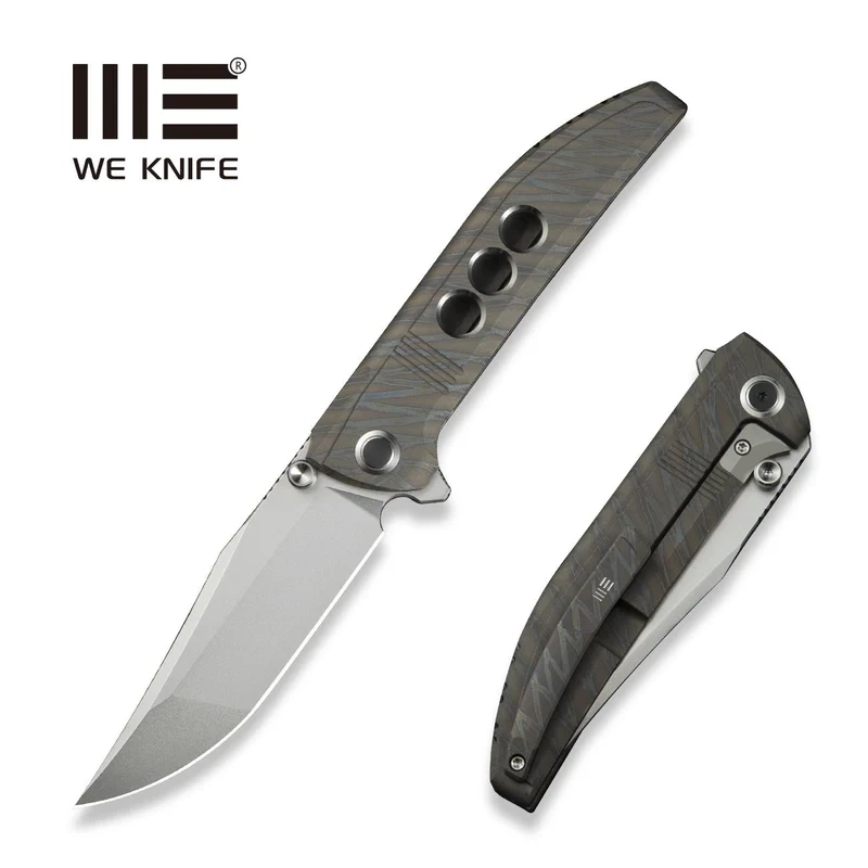We Knife Ezinta Tiger Stripe Titanium, Polished Bead Blasted M390 (WE22041-4)