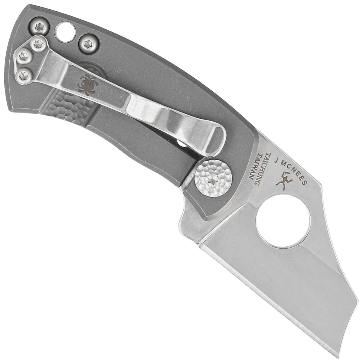 - McBee Gray Titanium, Stonewashed, an undersized folding knife designed by U.S. Marines veteran Jonathan McNees for Spyderco. Handle made of titanium, Blade made of excellent CTS XHP steel. Compact size and light weight allow you to fit it almost anywhere!