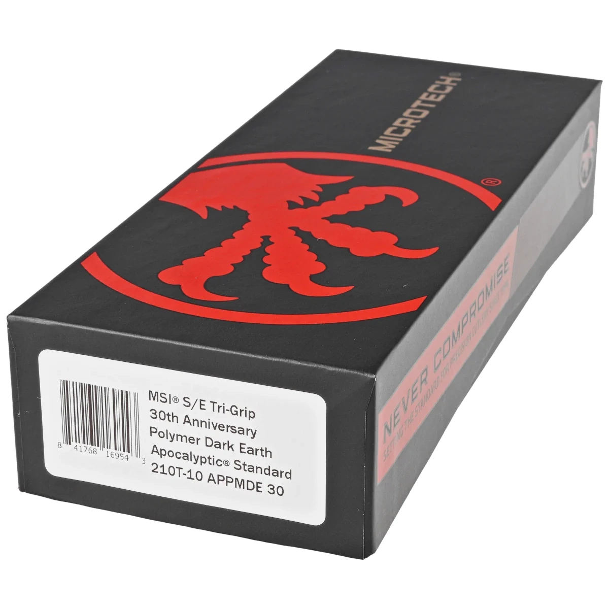 • 30th Anniversary MSI S/E Dark Earth Tri-Grip Polymer, Apocalyptic, released to celebrate Microtech's 30th anniversary folding knife with intuitive RAM-Lock, . Superior M390MK blade steel, the result of a collaboration between Microtech and Bohler.
