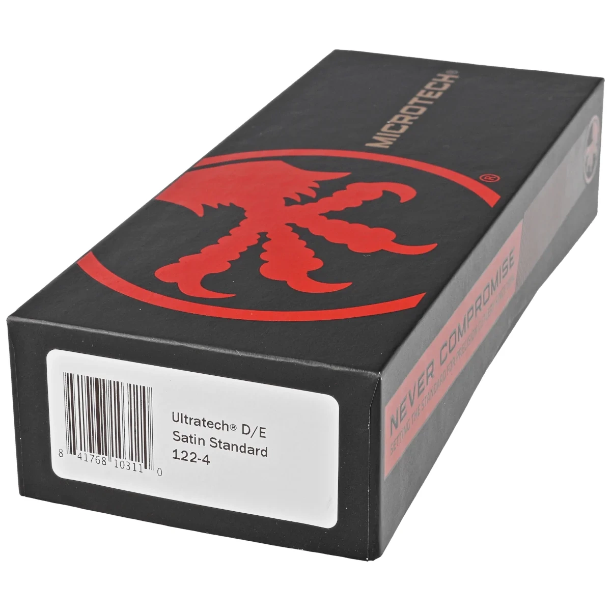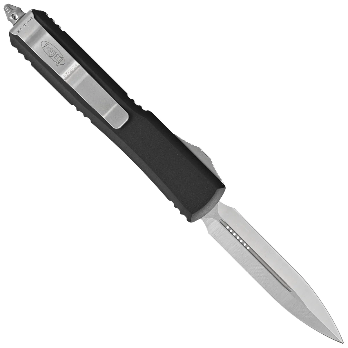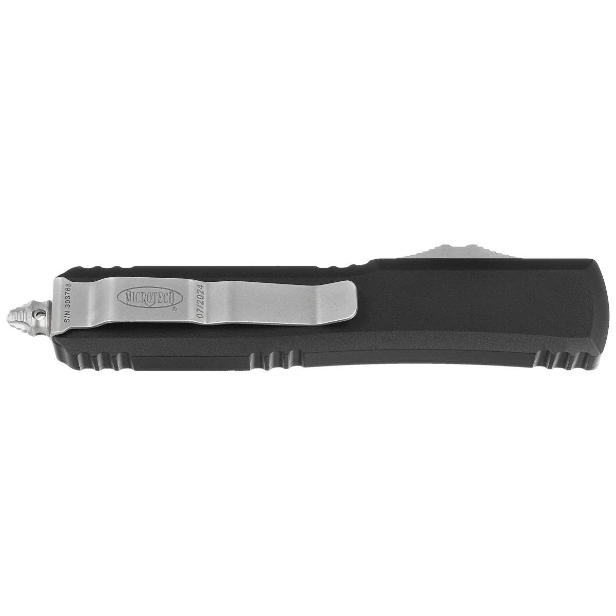 Ultratech D/E Black Aluminum, Satin is a full-size OTF (Out The Front) automatic knife from the Ultratech series. Featuring a hell of a fast extension mechanism with a razor-sharp double edge blade in a striking Satin finish. 100% made and assembled in the USA. Designed by Anthony Marfione, knifemaker and owner of Microtech Knives.