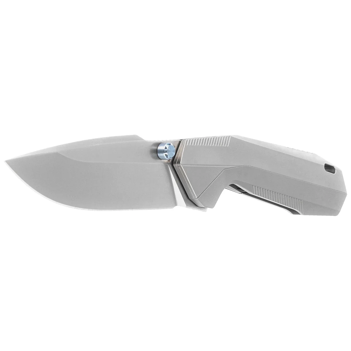 RT-WK1-A Disassemble Knife Gray Titanium, Hand Grinding Pearlescent, a unique EDC folder, a display of engineering in design, combines excellent functionality with unique style. The handle is something that draws the most attention in this knife. It boasts a titanium exoskeleton on which the outer monolithic housing milled from a single piece of titanium is mounted. This design provides extraordinary strength and structural rigidity. The drop point blade is crafted from Böhler M390 steel, widely regarded as one of the best knife steels available. Flipper tab allows for lightning-fast one-handed knife deployment, which is especially useful in situations where every second matters. The folding knife is designed to be easily disassembled without the need for specialized tools. RT-WK1-A Disassemble Knife combines practicality with modern design, making it an ideal choice for blade enthusiasts who value the ability to maintain their knife themselves.