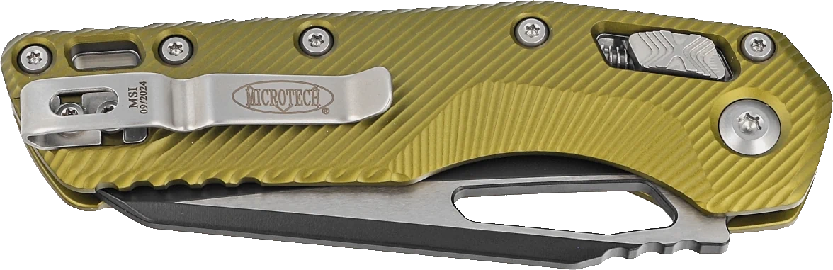 - MSI S/E Fluted OD Green Aluminium, Black strong folding knife with intuitive RAM-Lock. Superior M390MK blade steel, the result of collaboration between Microtech and Bohler engineers. Ergonomic aluminum handle. Designed by Anthony Marfione!