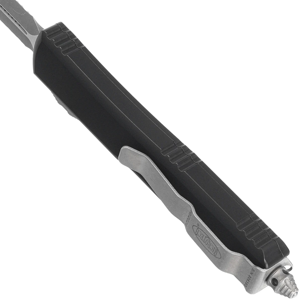Ultratech OTF Line - Microtech 's flagship model of the OTF line , which set the standard for all Out The Front knives. Ultratech 's proprietary trigger spring design, which remains in the “resting” position at all times, except when used. This prevents the spring from fatigue, reducing wear and tear on the internal trigger mechanisms which ensures that the knife will always function effectively. The light weight, one-handed opening and closing capability, slim Handle shape and sharp blade make this a one-of-a-kind knife available only from Microtech.