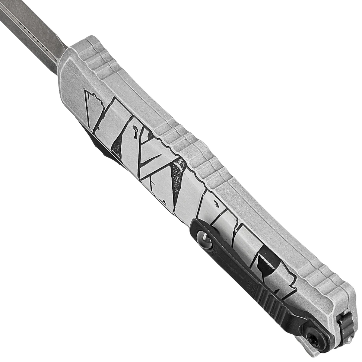 Microtech Hera II Mini D/E Signature Halloween Mummy Wrap Aluminum, Satin M390MK OTF Knife by Tony and Sean Marfione (1702M-1HWMYS)