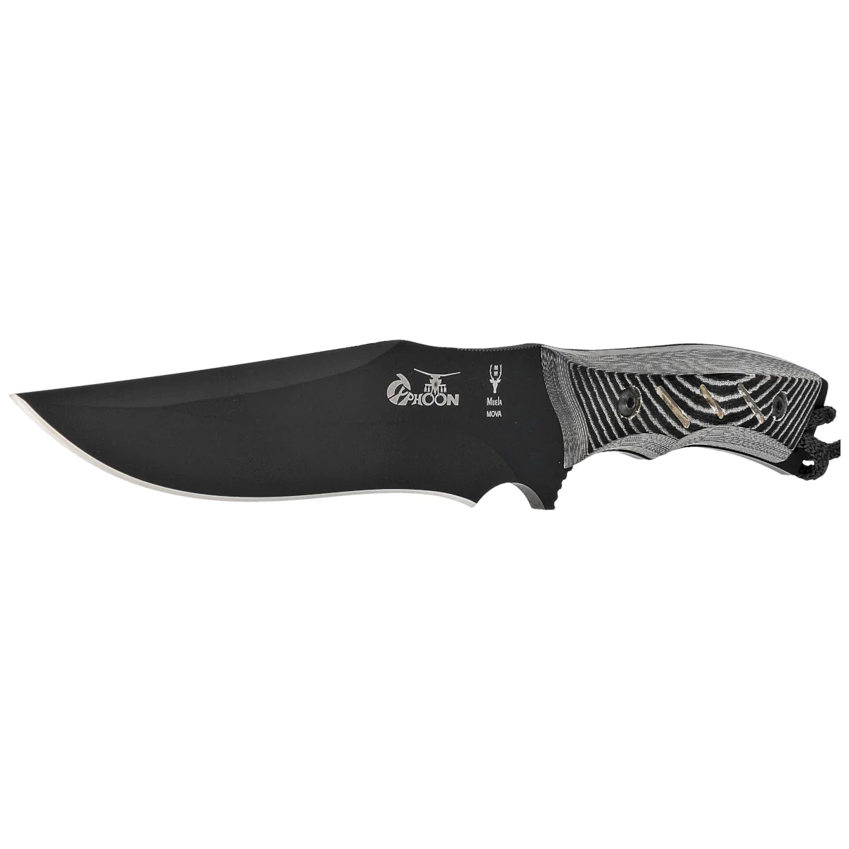 - Typhoon-15N Black Micarta, Black versatile fixed blade knife from Muela with full tang construction in X50CrMoV15 steel. Molded micarta grips bolted with torx screws, thumb ramp. Ruggedly durable will endure work in all conditions.