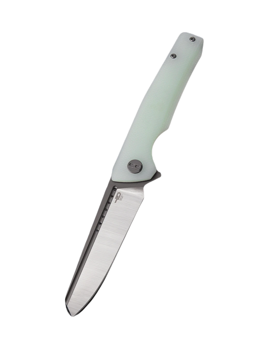 - Slyther Transparent G10, Grey Titanized/Satin, large, slim EDC folder, beautiful blade line and aggressive design. Handle made of G10 material resistant to most external factors, blade made of proven 14C28N stainless steel.