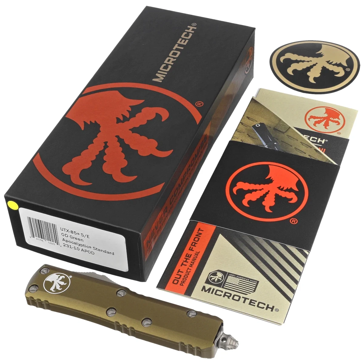 - UTX-85 S/E OD Green Aluminum, Apocalyptic is a compact OTF automatic knife from the UTX-85 series. Designed for EDC applications, it retains all the advantages of larger models. Operating in D/A mode, it features a fast blade extension mechanism.