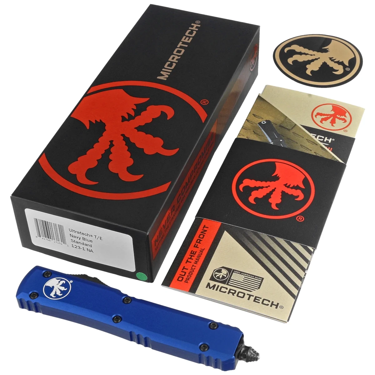 - Ultratech T/E Navy Blue Aluminum, Satin is a full-size OTF automatic knife from Ultratech. Operating in D/A mode, Blade made of Böhler M390 steel, precision machined aluminum Handle. Designed by Tony Marfione owner of Microtech Knives