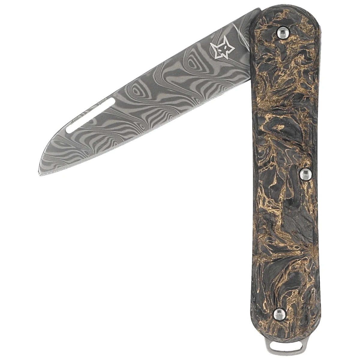 Fox Vulpis 130 LE No 116/250 Dark Matter Fat Carbon, Super Clean Damascus by Balbach Damast Pocket Knife (FX-VPDAM130 DMGO)