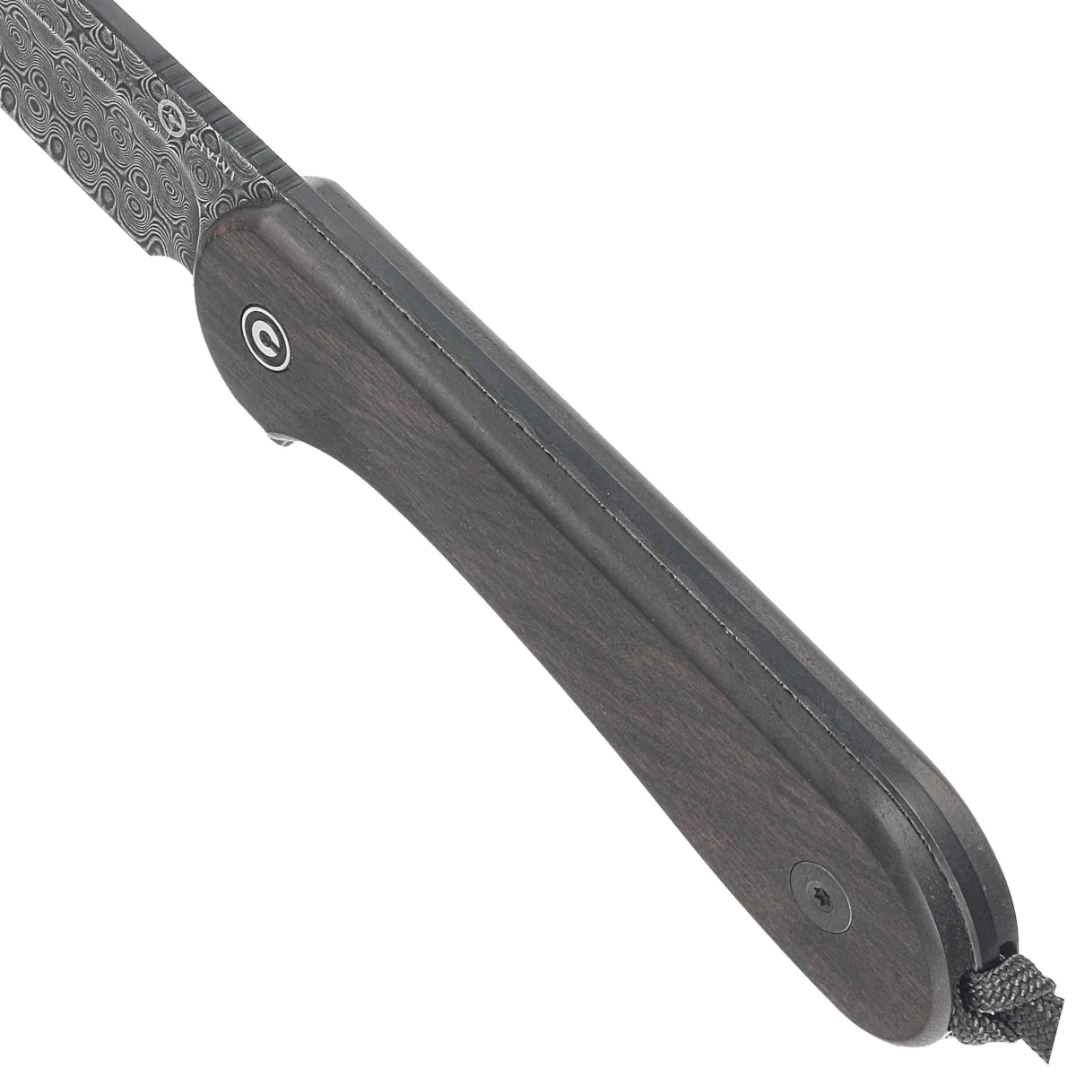 Handle – flat scales made of ebony wood, which have been screwed directly to the tango of the knife. The simplicity and solidity of the design give confidence in many years of use. In the back of the Handle there is a hidden place for attaching a safety or decorative cord (included). As in other models, the Handle was decorated with a stylized logo of the manufacturer.