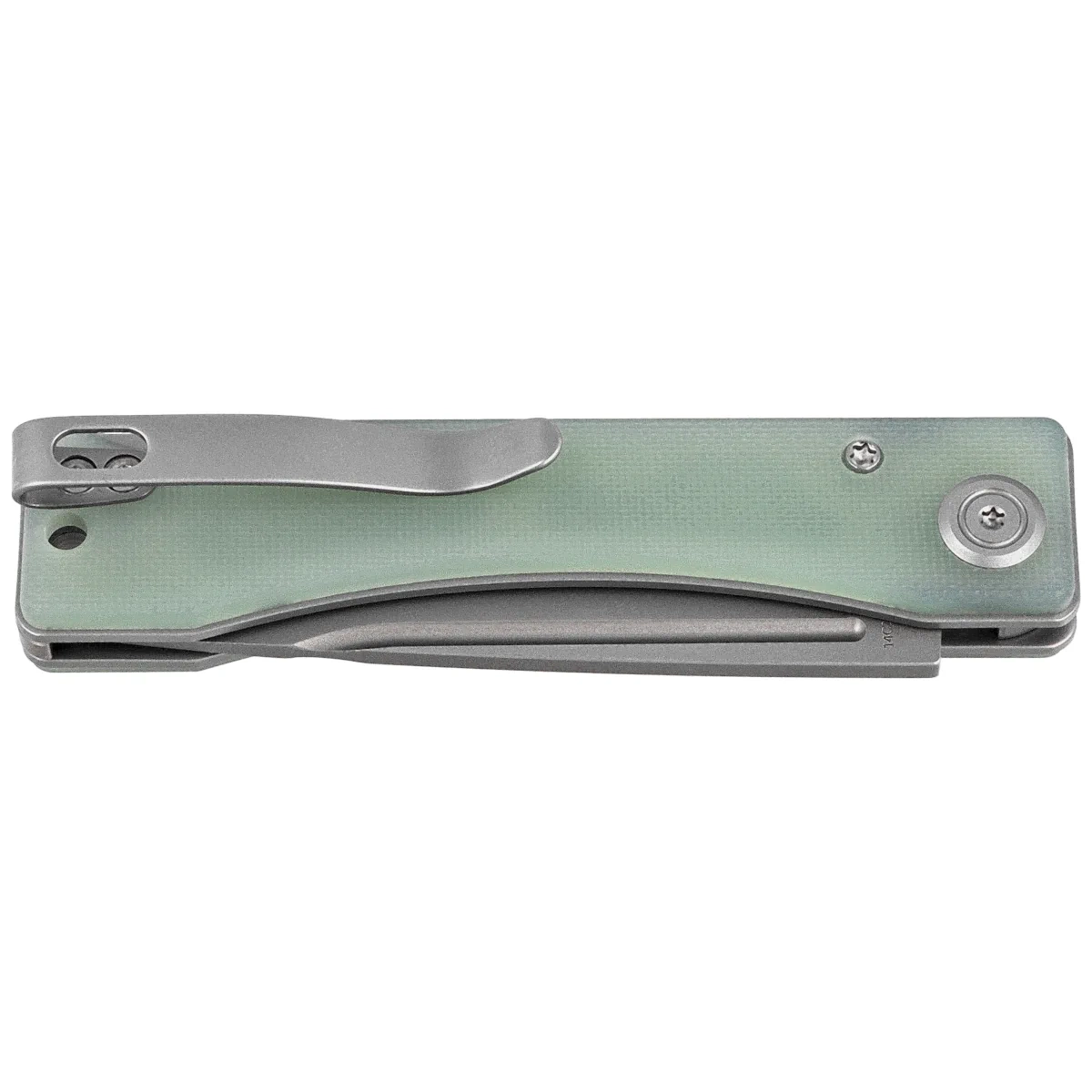 Akino Jade G10, Beadblasted is a versatile EDC folding knife that combines functionality with a unique design by acclaimed designer Tiguass. Blade made of Sandvik 14C28N steel, known for its excellent corrosion resistance and exceptional ease of sharpening. Two-handed opening with a gouge in the blade, making it legal in many countries with restrictions on carrying knives. The ergonomic handle made of durable G10 composite provides a secure grip in any situation, regardless of weather conditions. The lockback system, considered one of the most reliable, guarantees safe use. Its compact size and low weight make it an ideal companion for everyday challenges.
