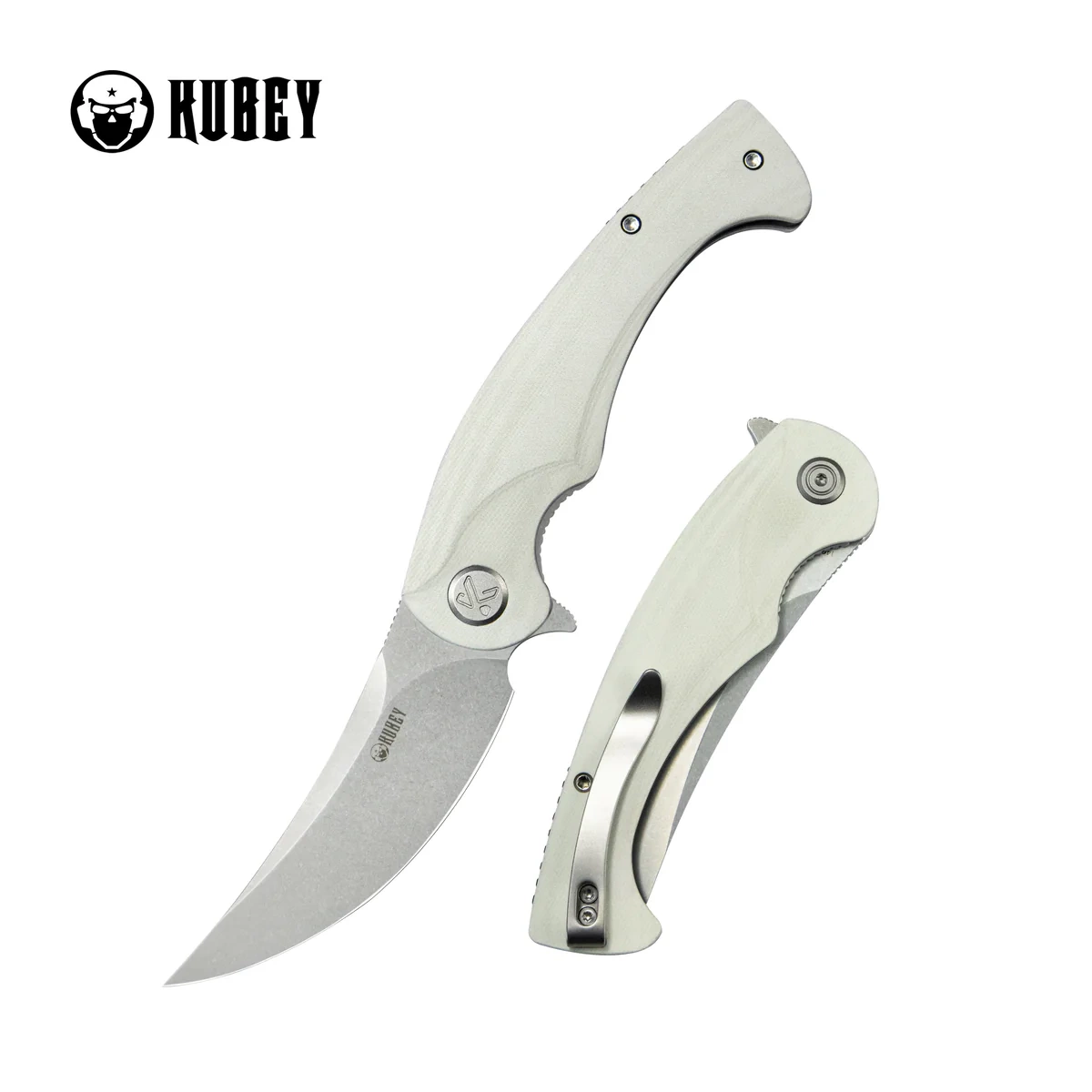 - Scimitar White G10, Bead Blasted expressive folder with distinctive Blade made of Sandvik 14C28N steel, Handle made of modern G10 composite. An ideal knife for intensive use. Kubey, durable and functional tools that last for years!