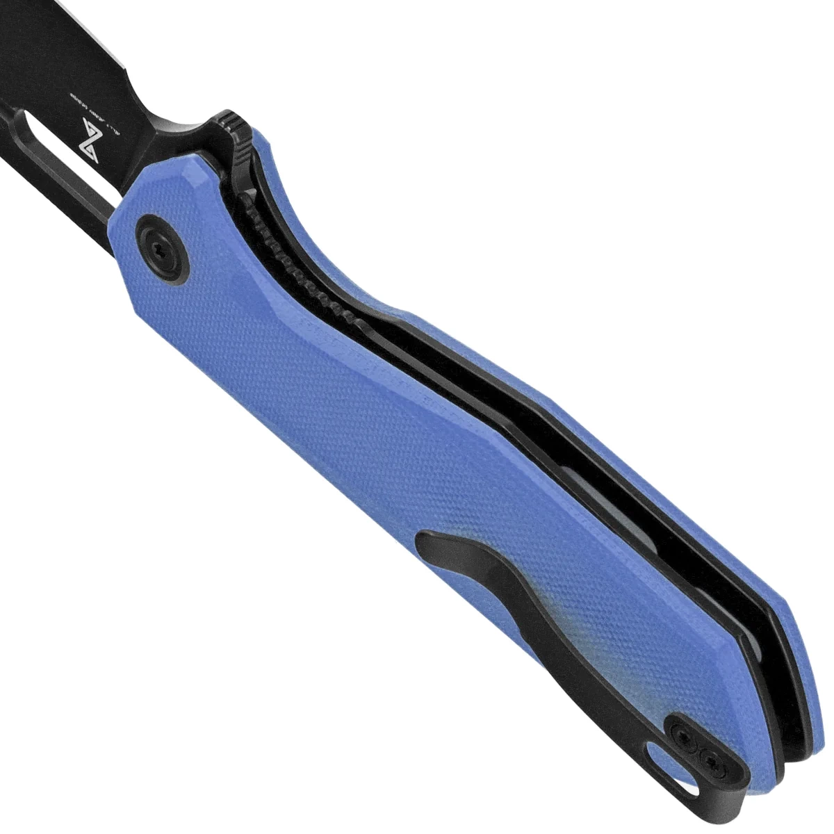 - Atlas Denim Blue G10, Dark Stonewashed, a strong, compact EDC folder at a great price. Blade sheepsfoot made of Sandvik 14C28N stainless steel, ergonomic G10 composite handle. Safety is provided by a liner lock. An excellent tool!