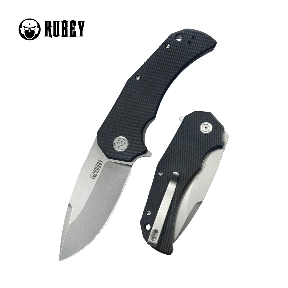 Kubey Bravo One Drop Point Knife Black G10, Beadblasted AUS-10 by Mikkel Willumsen (KU319H)