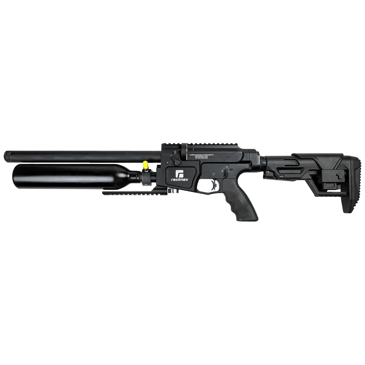 - Reximex NYX Compact 4.5 mm – compact, tactical PCP air rifle with Side Lever cocking, shot regulator, fully adjustable AR-style telescopic stock, and integrated suppressor. Available in calibers: 4.5 mm, 5.5 mm, 6.35 mm.