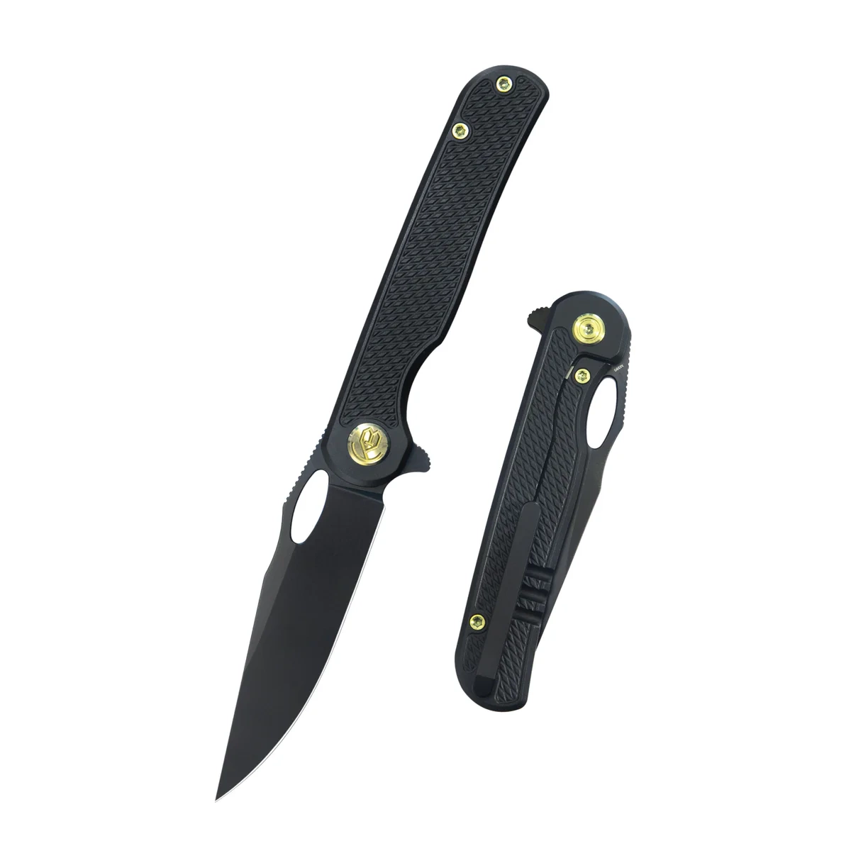 - Hydro Black Titanium, Black DLC compact EDC folder from the Perez workshop. Blade made of excellent Böhler M390 steel, titanium handle with characteristic diamond texture. Opens with a flipper or hole in the clip. Secure frame lock.